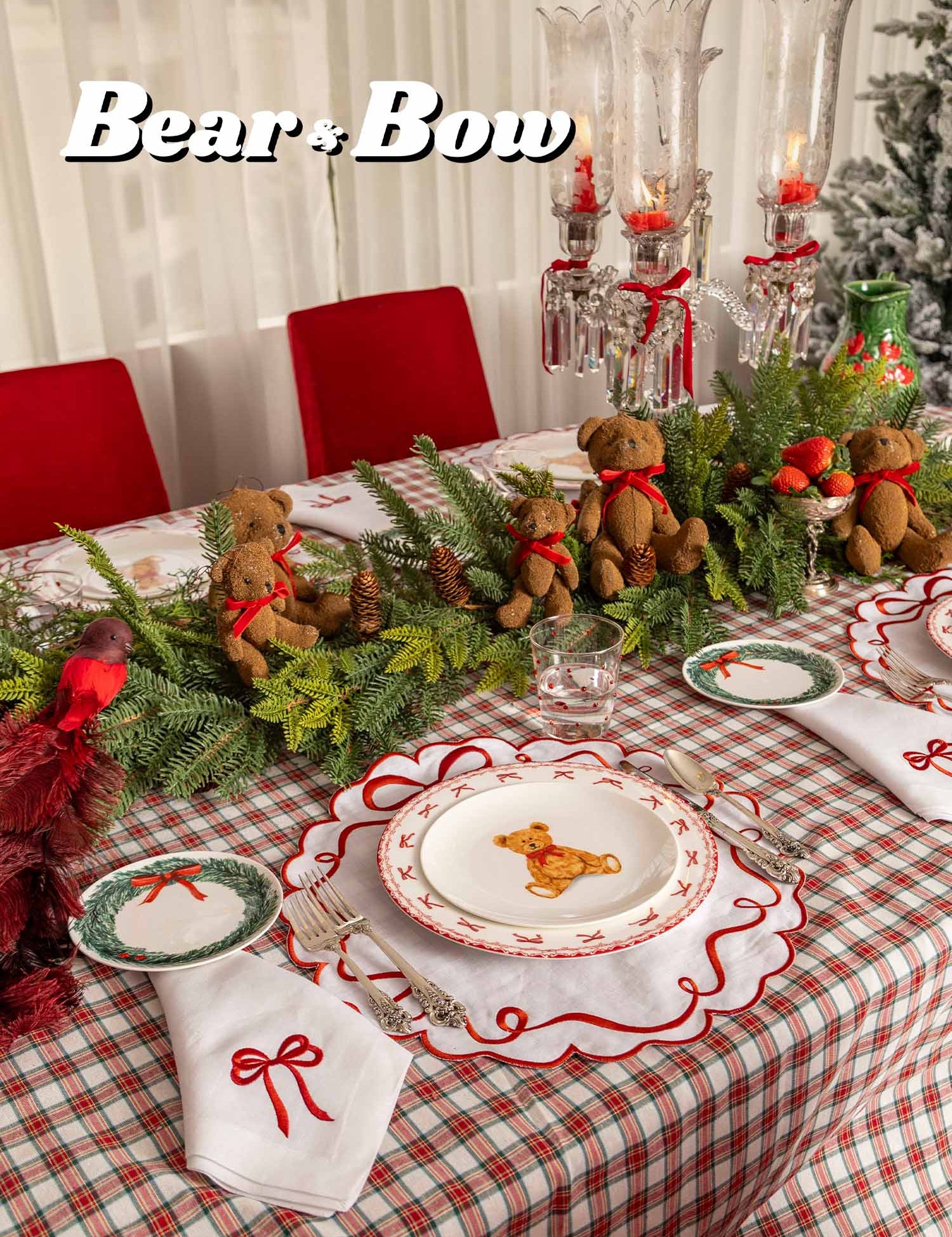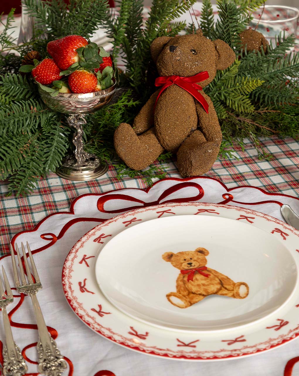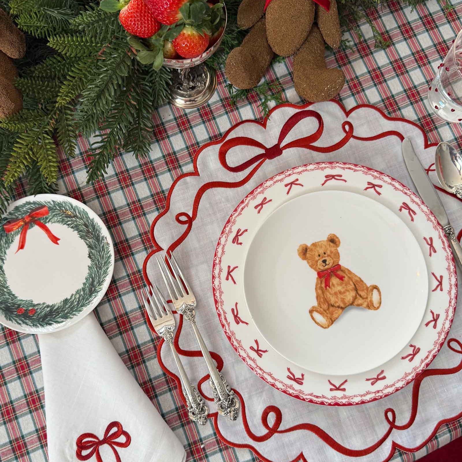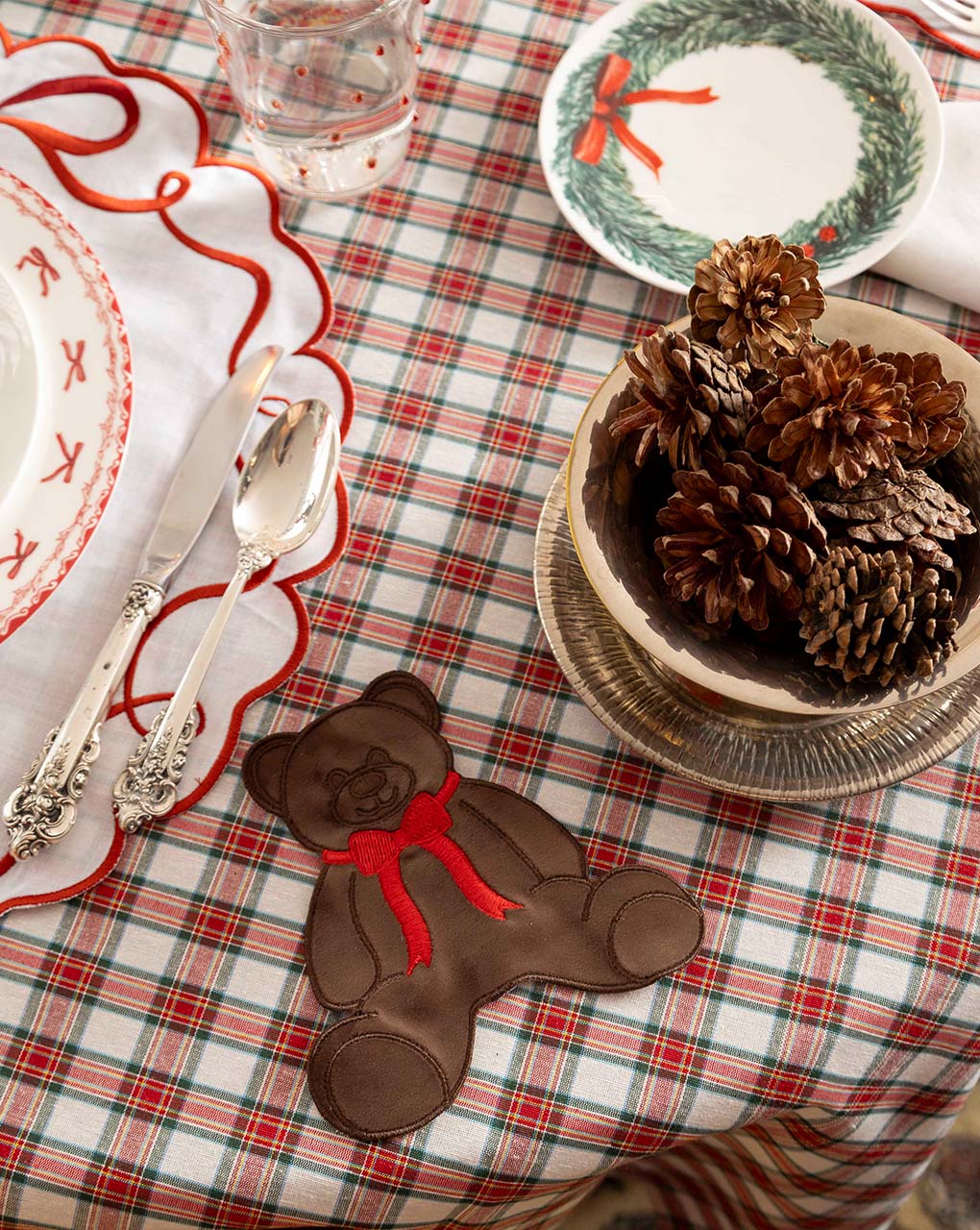 La Navidad más espectacular con un setting de Osito y moños. Perfecta para las cenas Navideñas con amigos y familia.