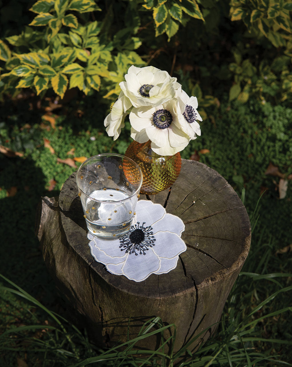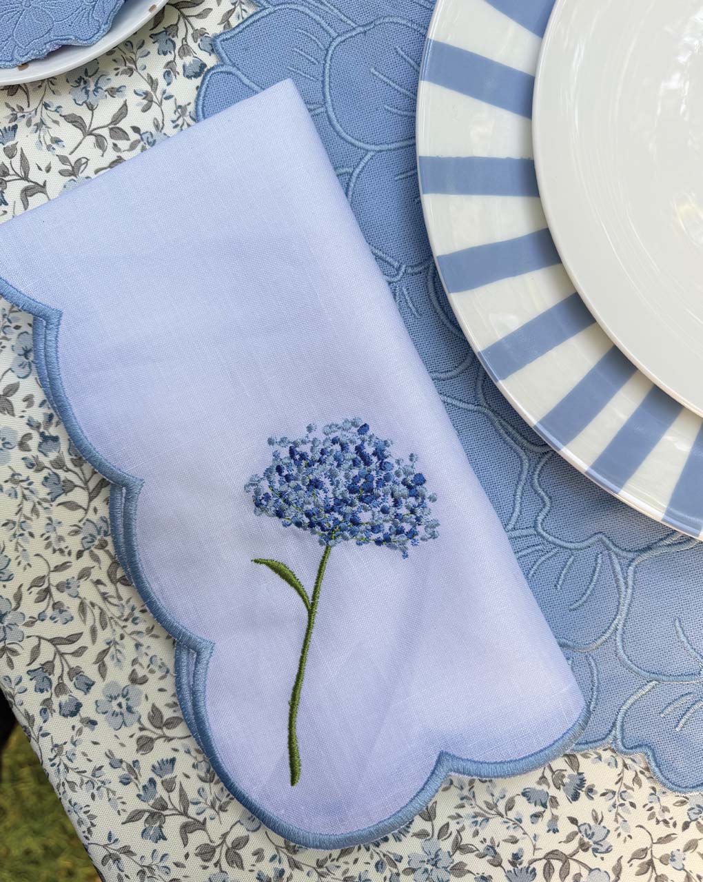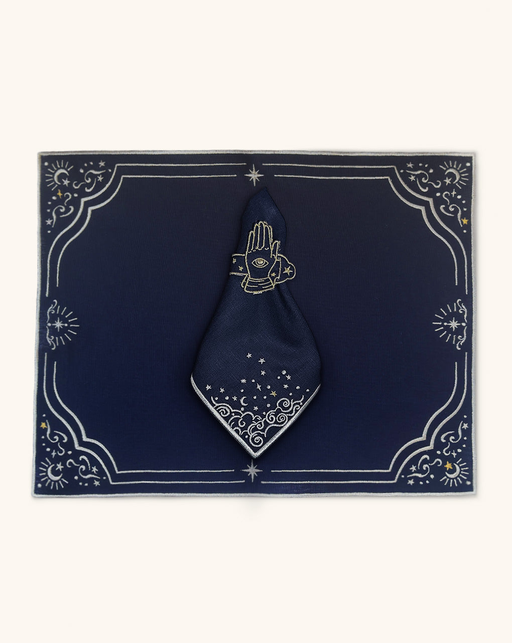 Inspirado en los olivos, esta colección incluye individuales blossom en verde y morado, servilletas bordadas con olivos y la colección Olival de Bordallo Pinheiro.