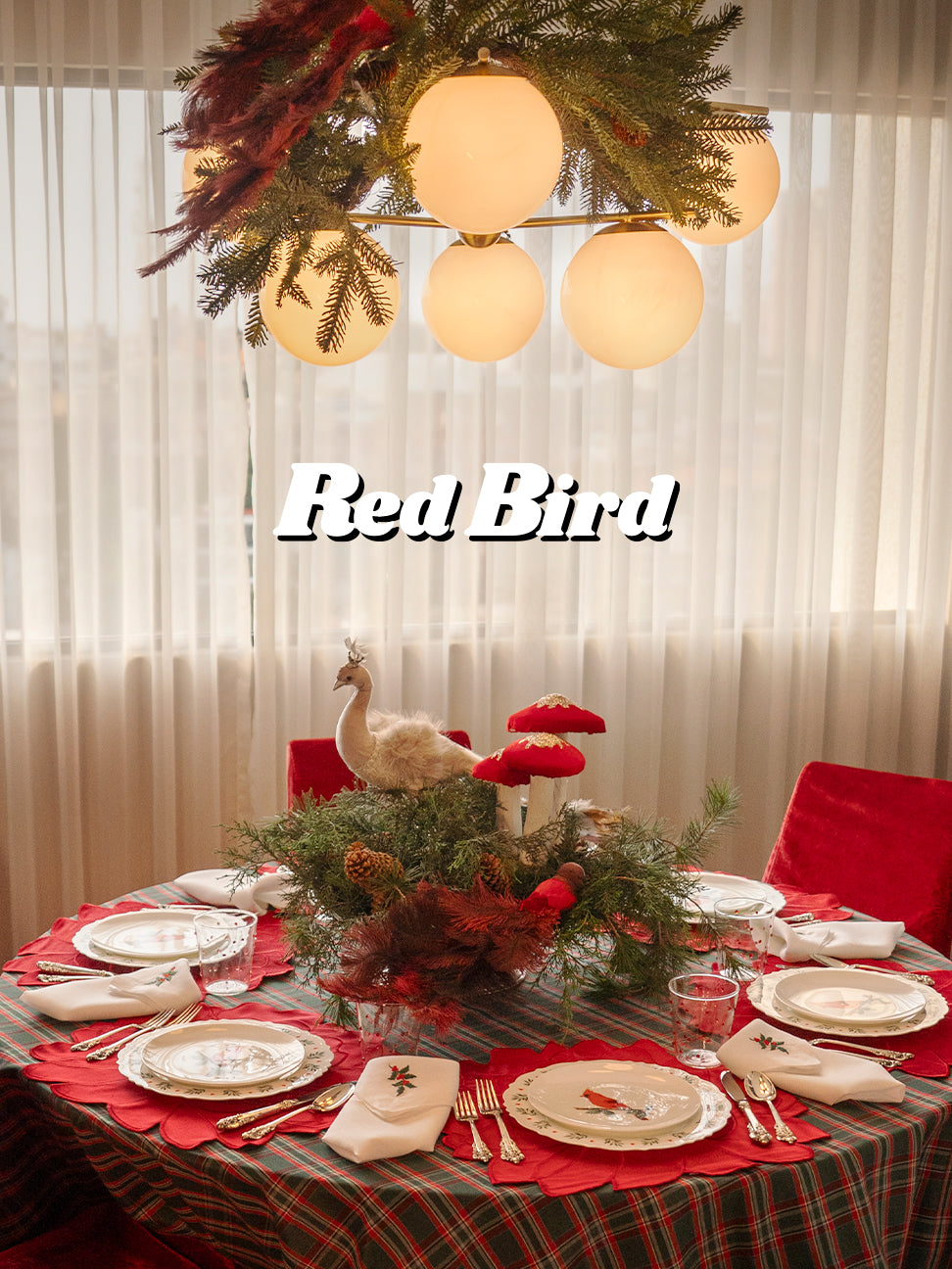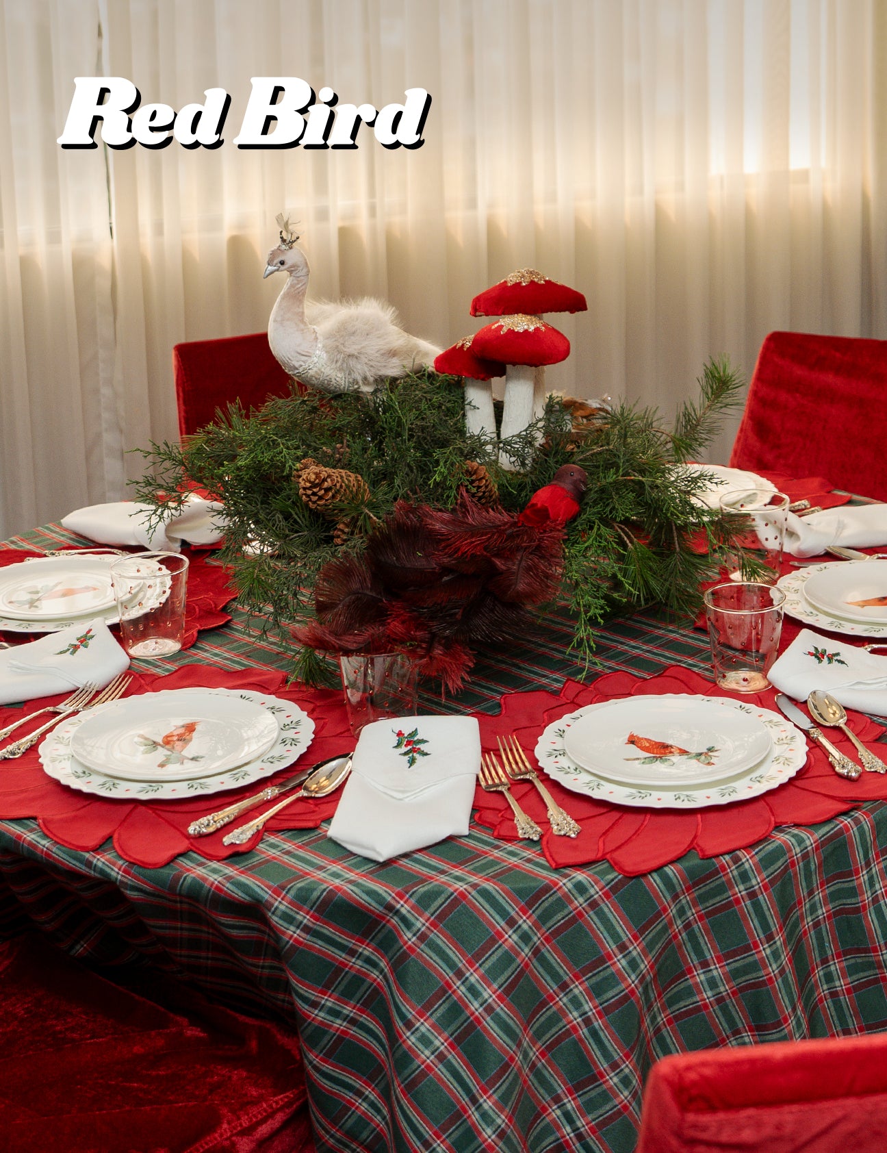 Christmas morning con el pajarito rojo, la mesa perfecta para la mañana de Navidad, para abrir regalos y disfrutar con amor.