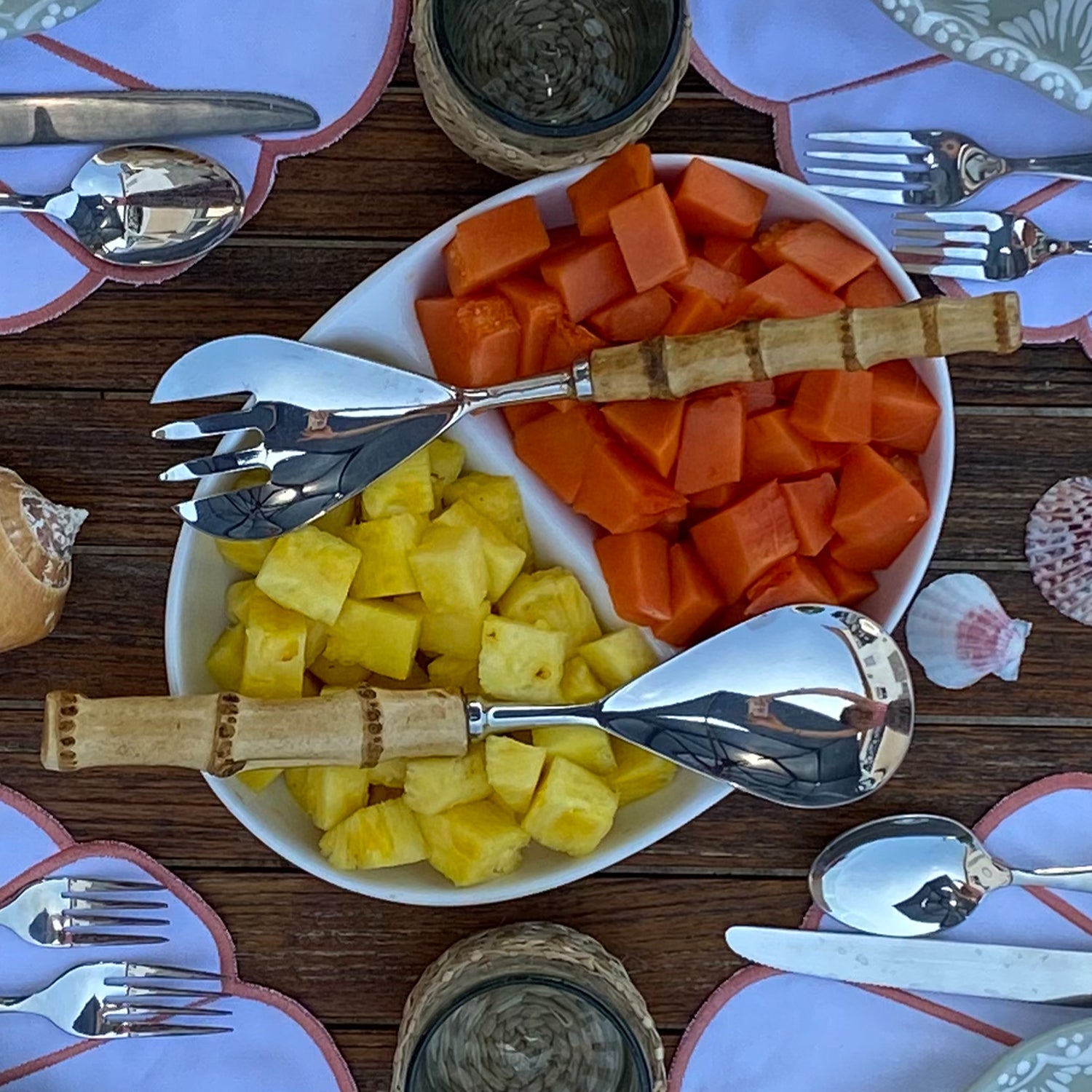 Juego de 5 Cubiertos para Servir con Mango de Bambú Natural