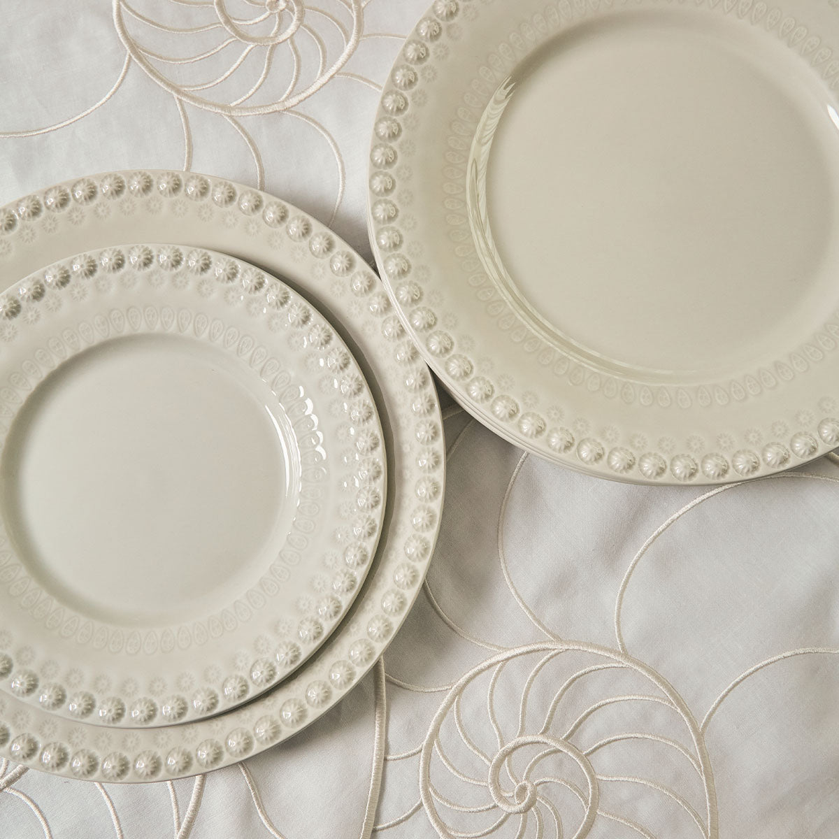 Bajo plato de cerámica color gris niebla de  la colección Fantasía de la marca Bordallo Pinheiro