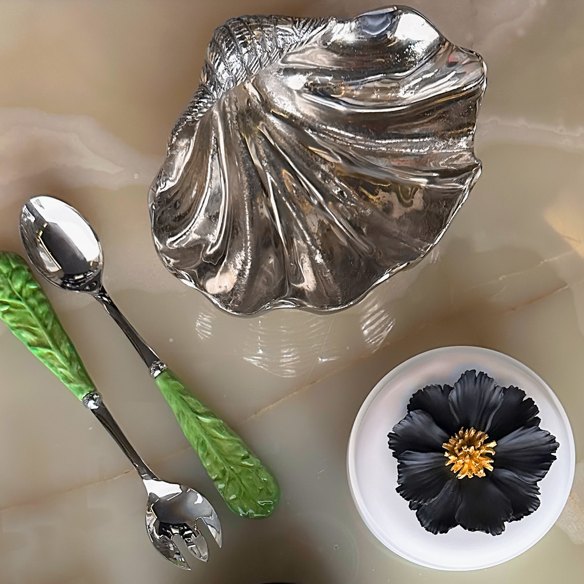 Una espectacular ponchera en forma de una concha marina realista. Utilízala como fuente para servir mariscos, como frutero o simplemente como una lindísima pieza decorativa para tu casa.