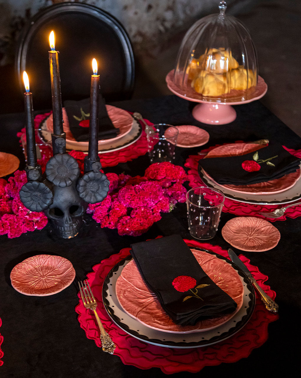 Individuales en forma de flor de celosía. Cuidadosamente bordado y recortado a mano. Ideal para la mesa del Día de Muertos o para settings de otoño.