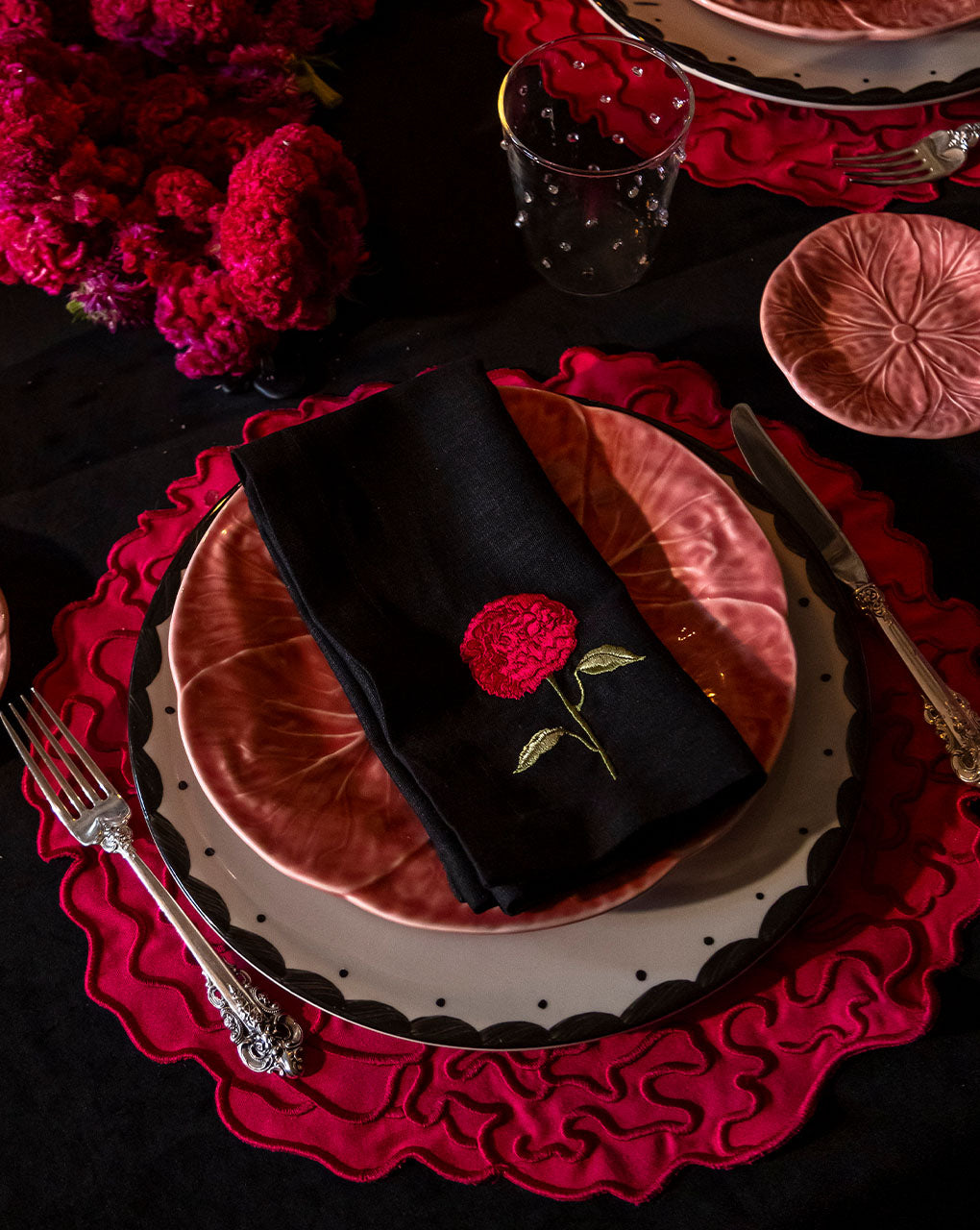 Individuales Flora en Algodón Fucsia Bordado de Celosía. Set de 4