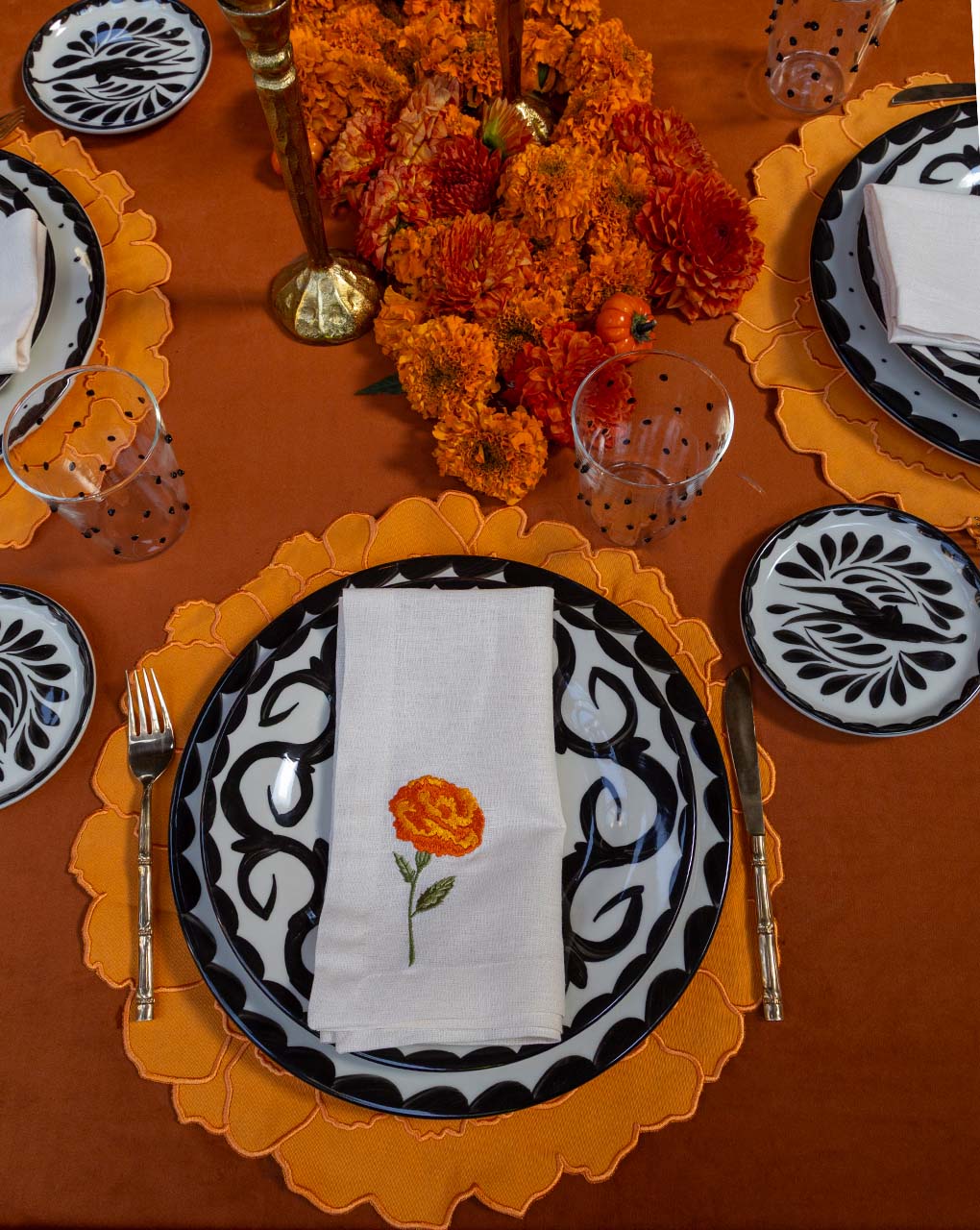 Este mantel de hermoso terciopelo es la pieza perfecta para una mesa de fantasía de otoño.