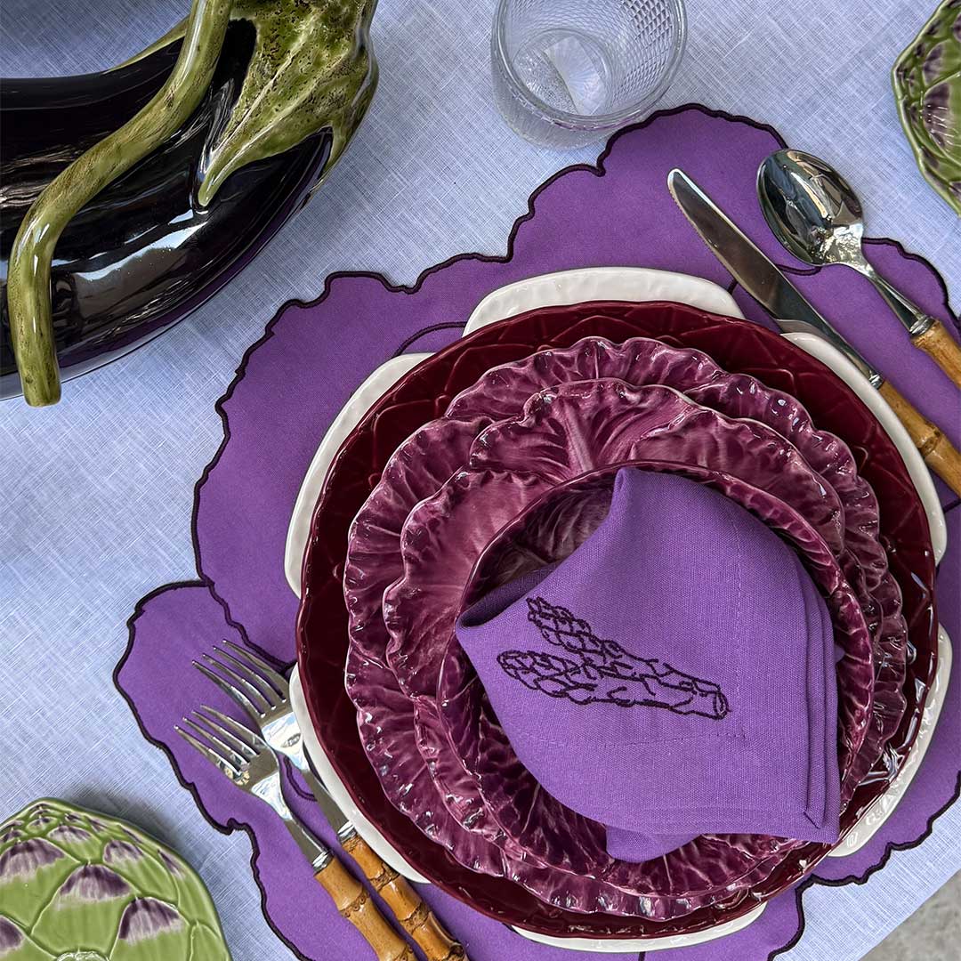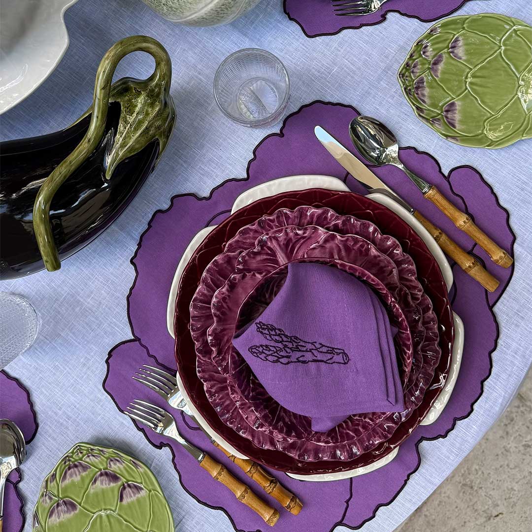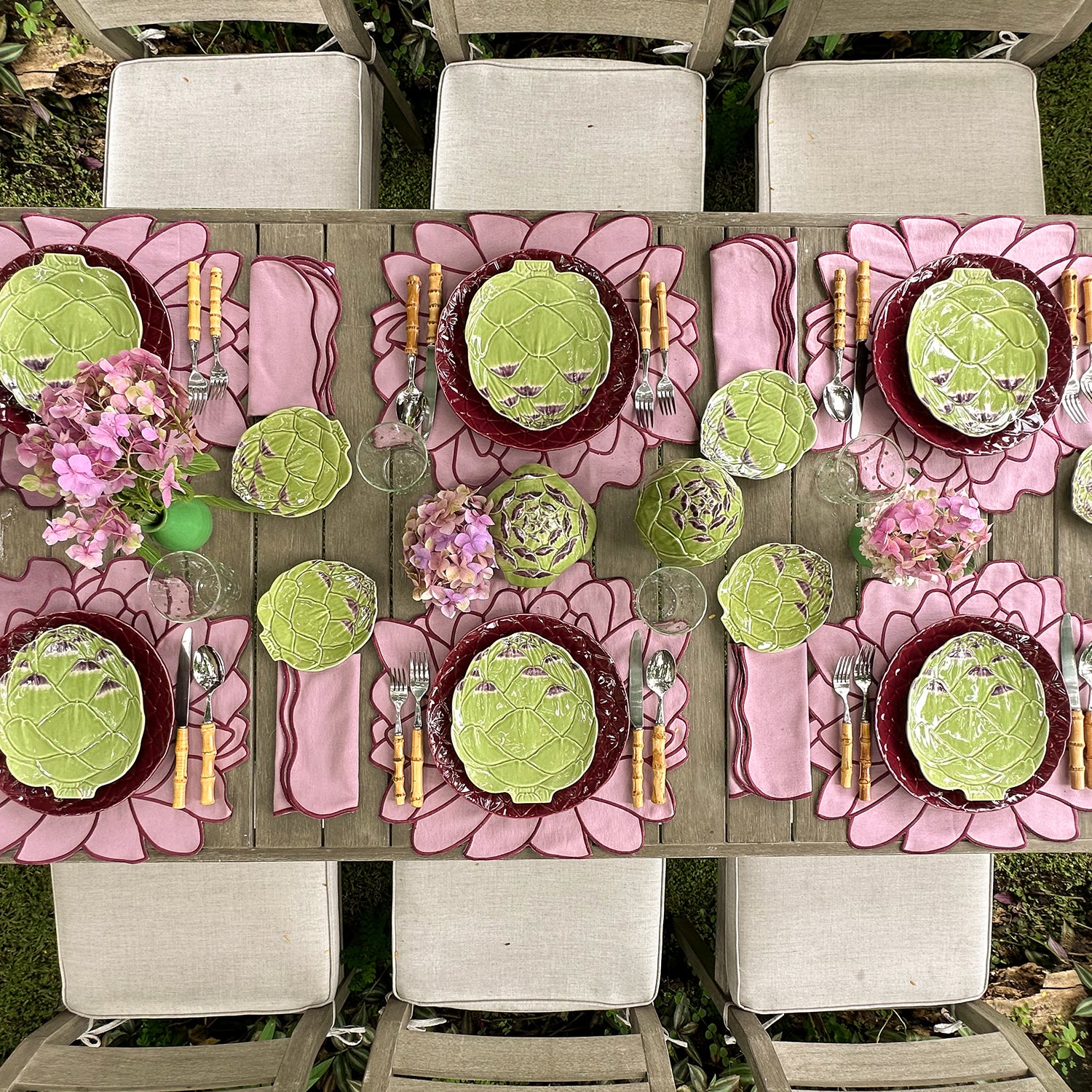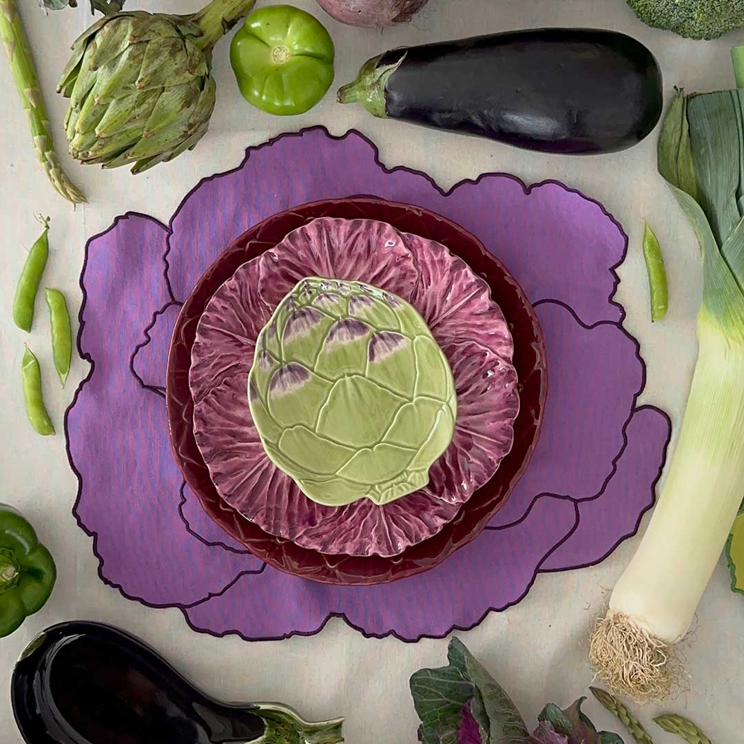 Juego de 4 hermosos platos para pan o postre de cerámica en forma de alcachofa en color verde de Bordallo Pinheiro. La pieza más espectacular para tu mesa.
