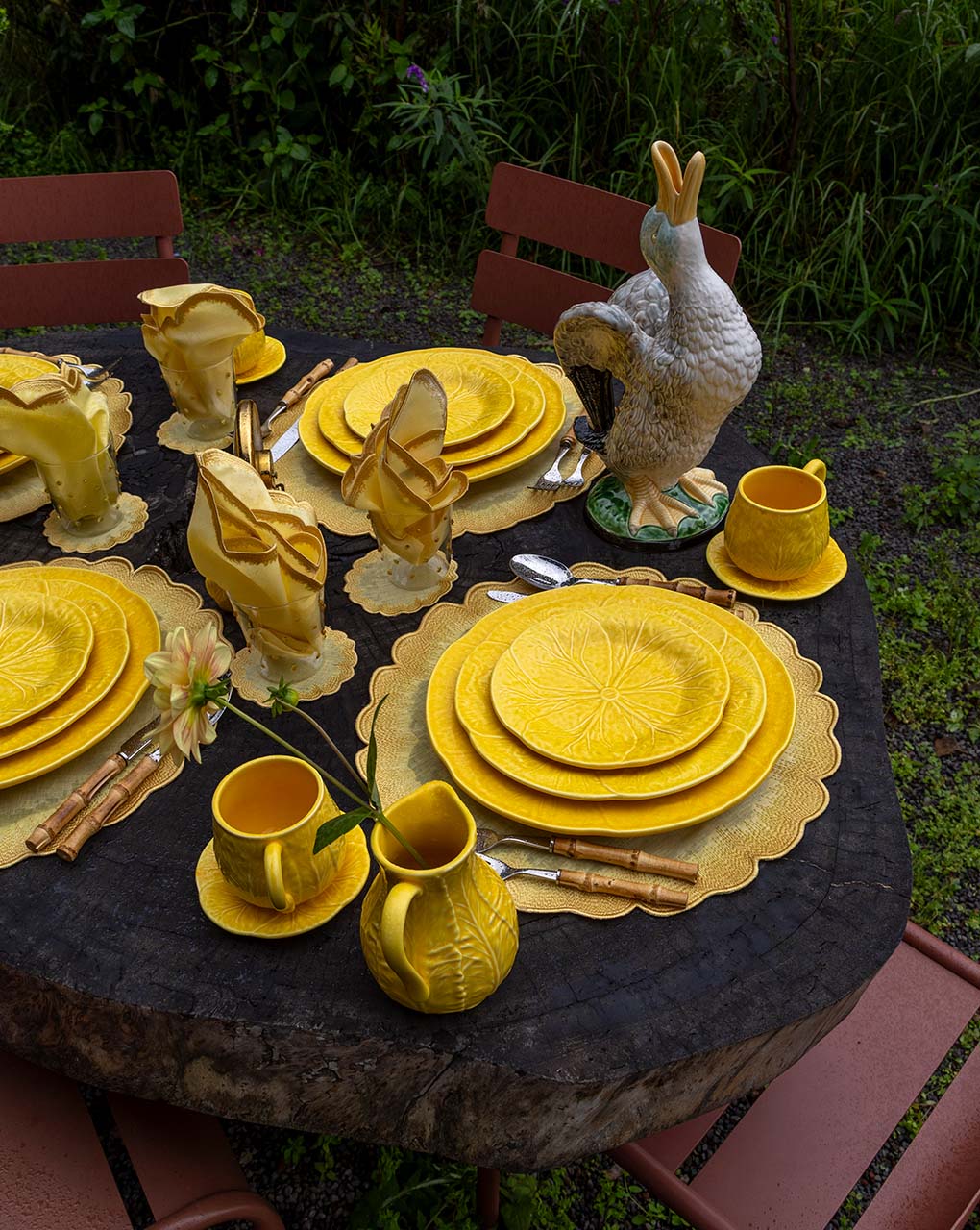 4 Coasters Vivi en Lino Amarillo con Bordado de Pelitos