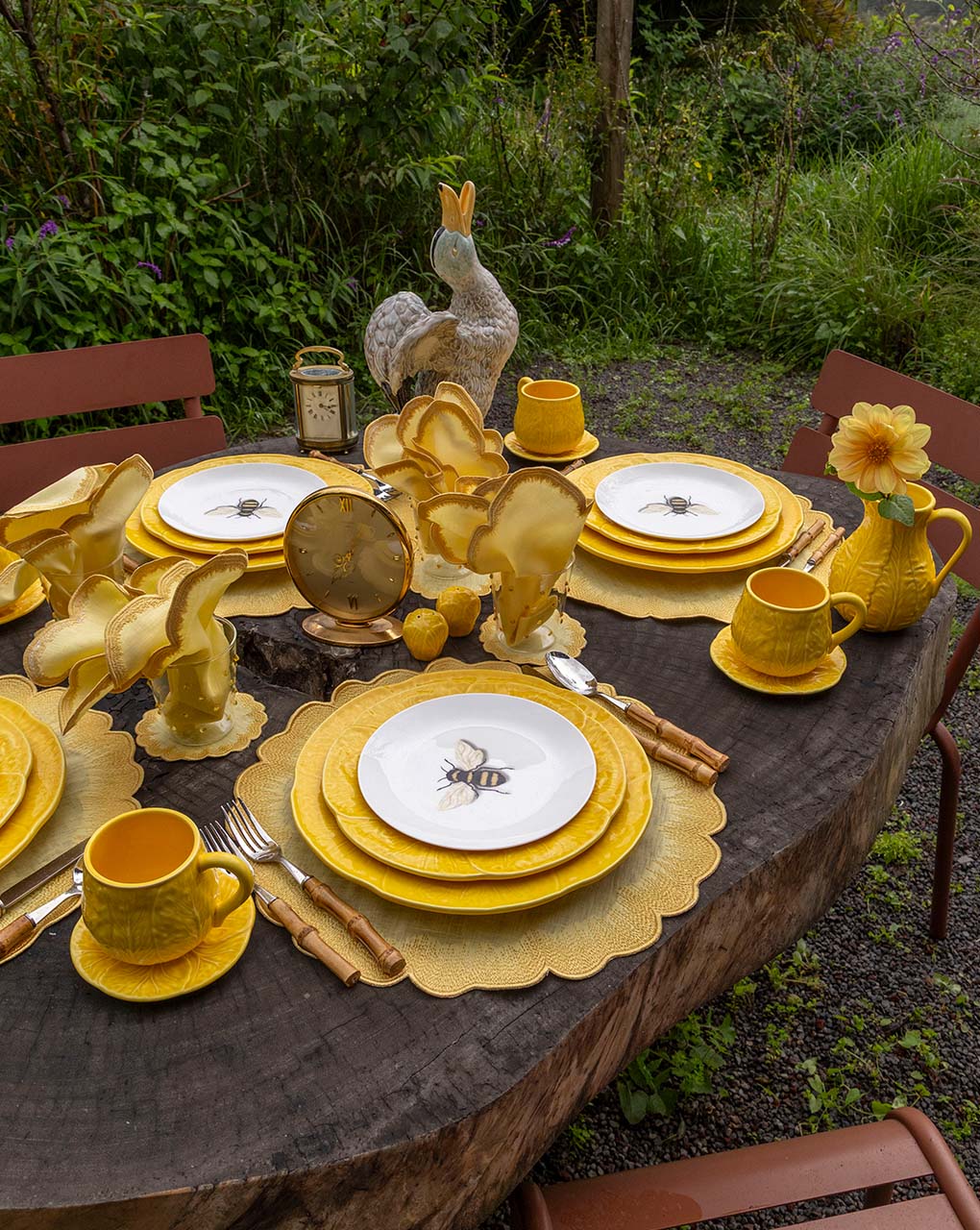 La combinacion pefecta para el otoño viene en este setting que combina el icónico plato de repollo en amarillo canario con los platos de Abeja de Zash.