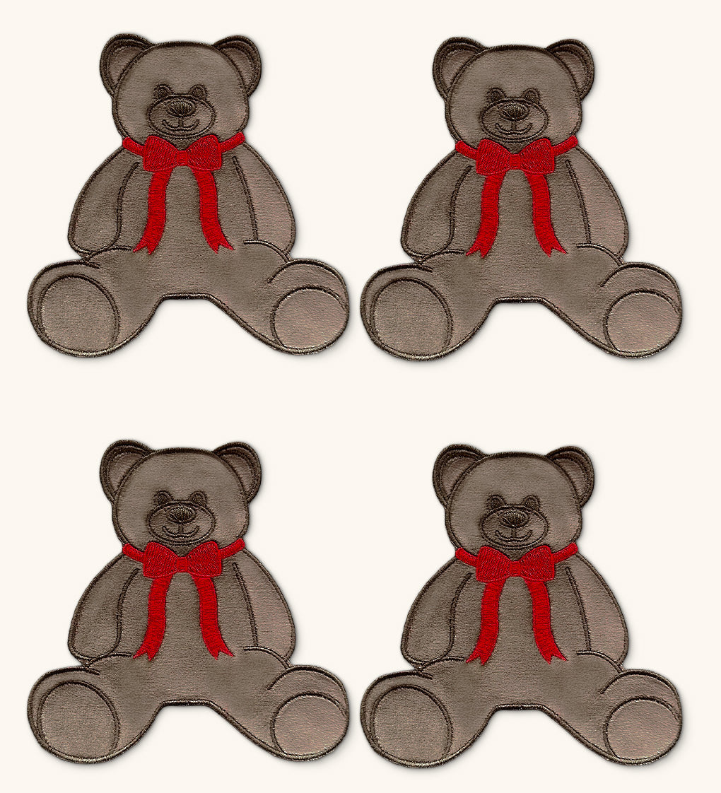 Cocteleras Teddy Bear en Terciopelo Café con bordado de Oso. Set de 4