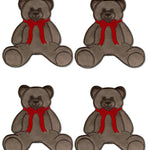Cocteleras en forma de oso con moño bordadas en terciopelo suave. Ideales para drinks, botanas y decoración de mesas de temporada. Cuteness overload!