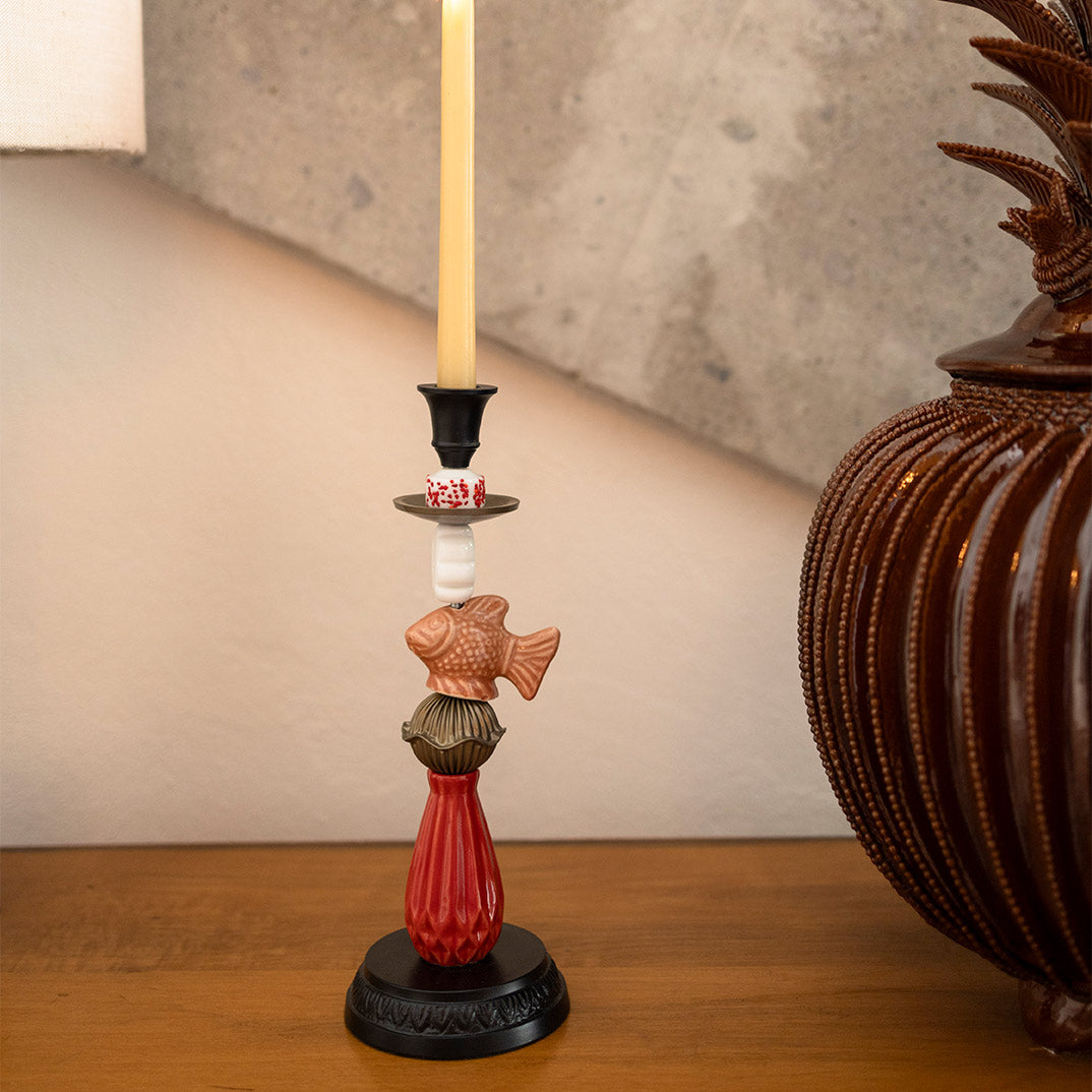 Candelabro de Latón, Vidrio y Cerámica Coral Reef