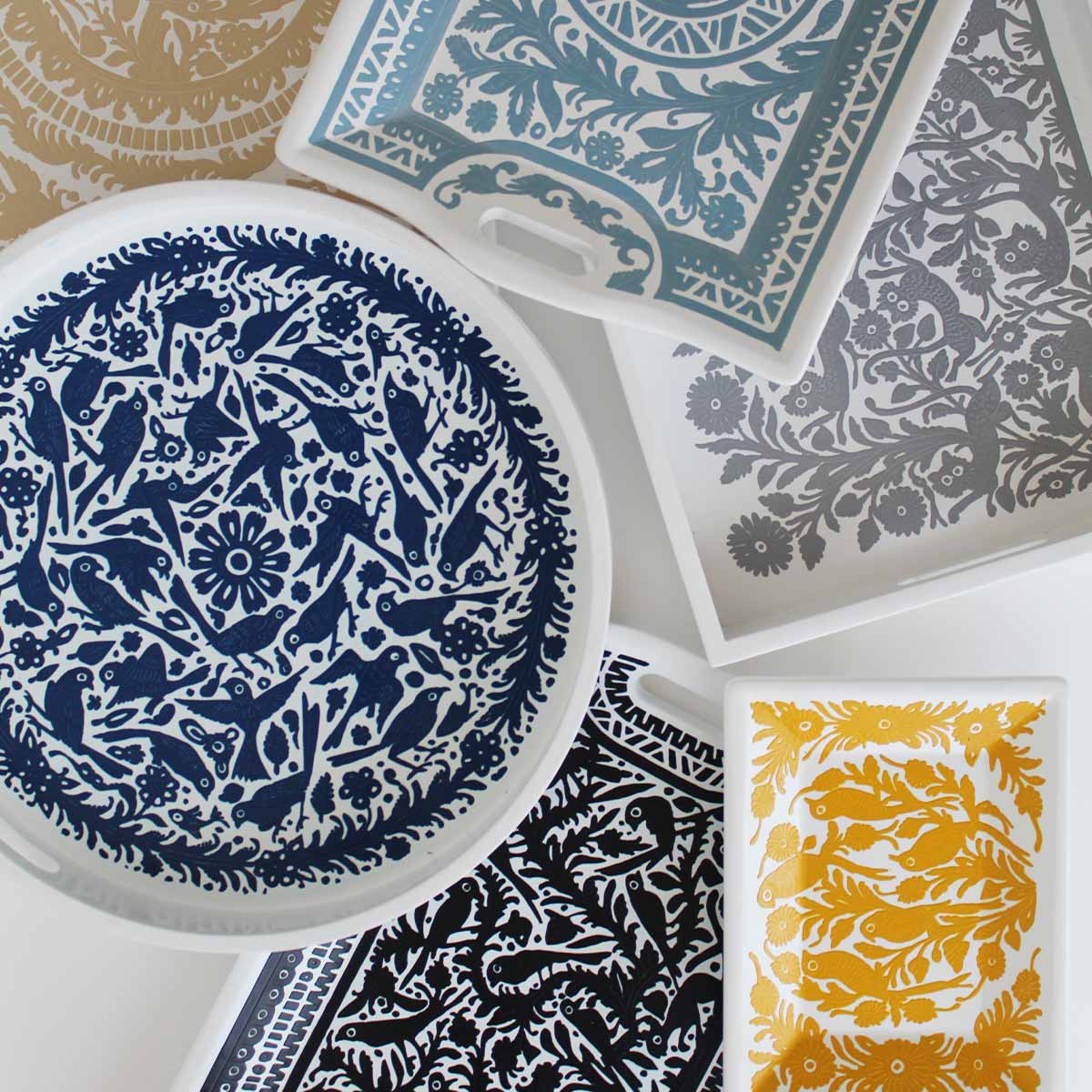 Charola de madera de Olinalá en Blanco con Gris, tallada y pintada a mano de forma artesanal de 18 x 12 cm