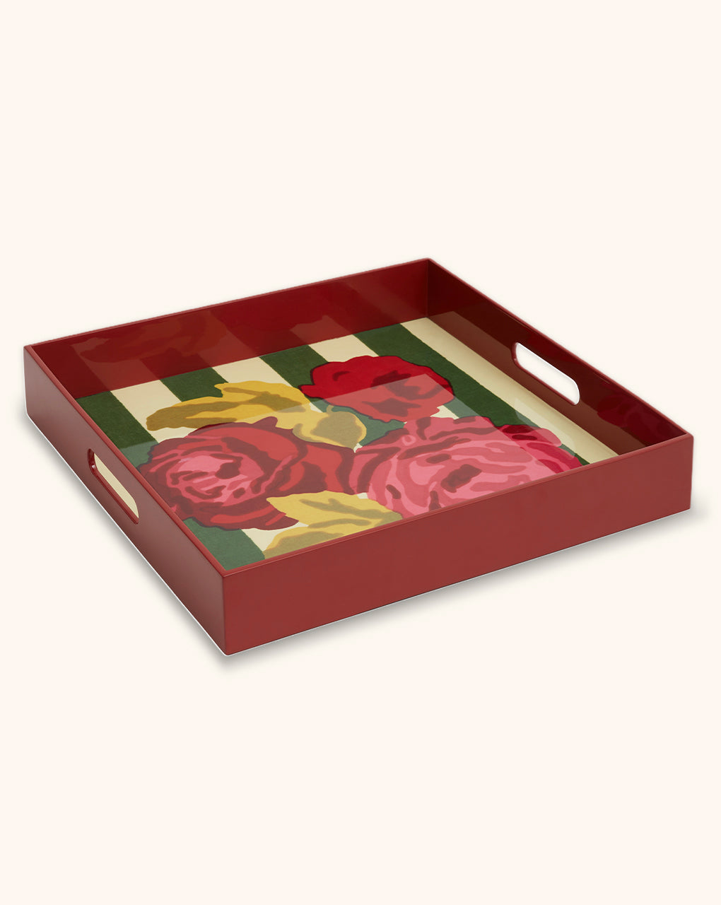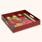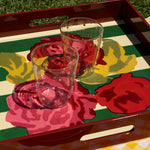 Charola Cuadrada de Madera con Rayas y Flores - Lisa Corti