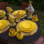 Un individual sofisticado, atemporal y con un craftsmanship excepcional. Cada uno es bordado en lino Amarillo con hilo dorado, recortado a mano cuidadosamente. Lo más chic para poner en tu mesa.