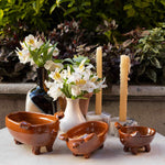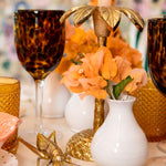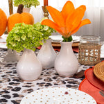 Diseñamos estos floreros de talavera, pensados para usar muchos a la vez, poder mezclar colores y hacer que luzca tu mesa. Cualquier florecita se le ve bien, no estorban para platicar y le dan movimiento y personalidad a tu tablescape.
