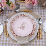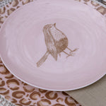 ¿Hay algo más nice que este plato rosa con su pajarito? Combínalo divino con el trinche de animal print rosa.
