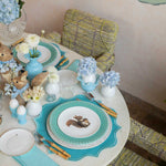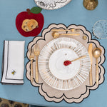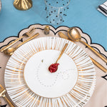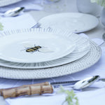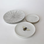 Juego de 4 platos para Pan o Postre de 16.5 cm diseñados en exclusiva para ZASH. Plato blanco con una abejita volando y borde de oro de 24 K.