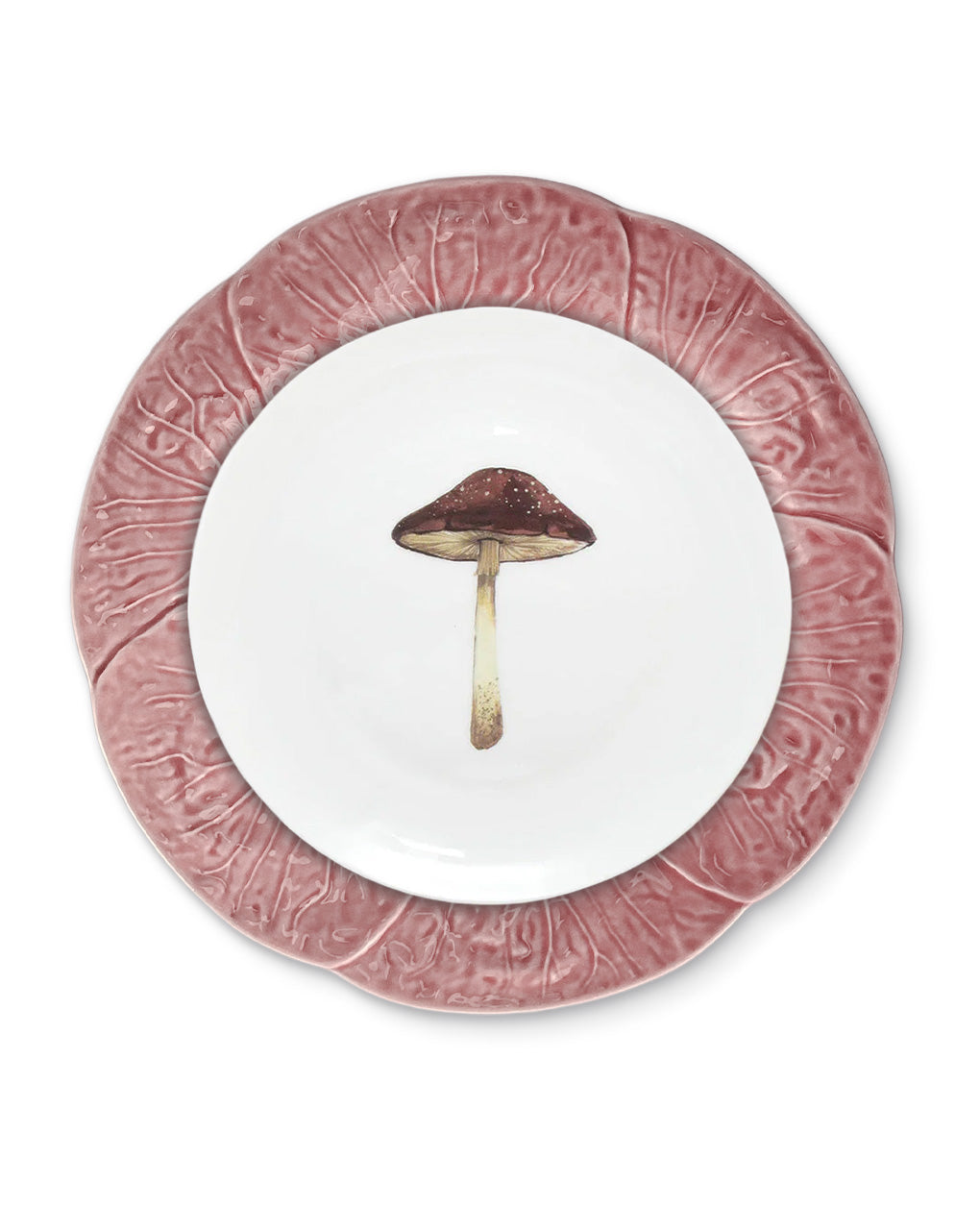 Vajilla con Platos Trinche de Repollo Rosa Flamingo y Platos para Ensalada con Hongo. Set para 4 personas