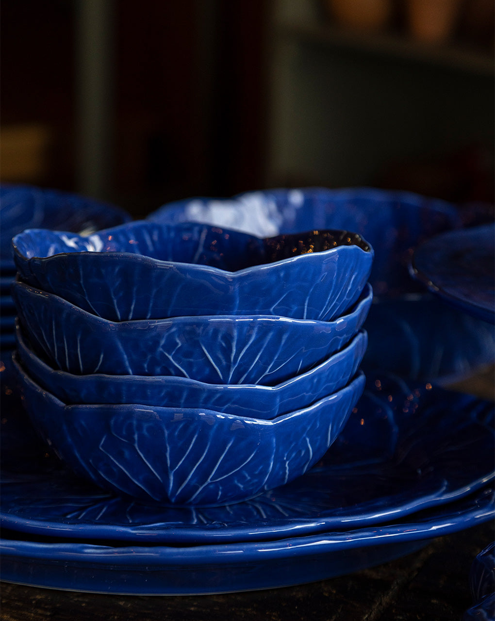 Plato Pan de Repollo Azul Cobalto. Set de 4