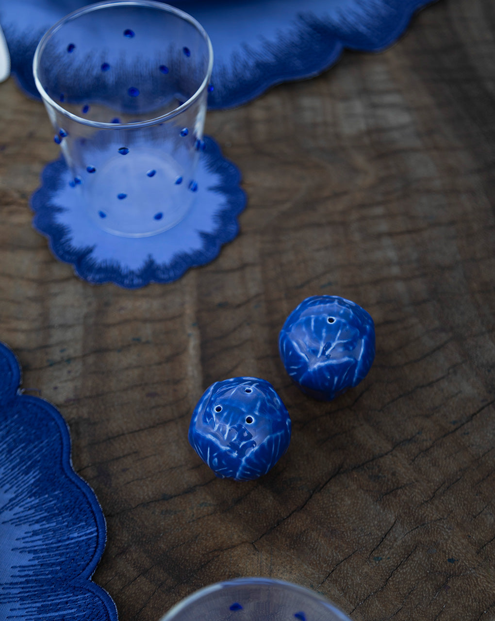 Bajoplato de Repollo Azul Cobalto. Set de 4