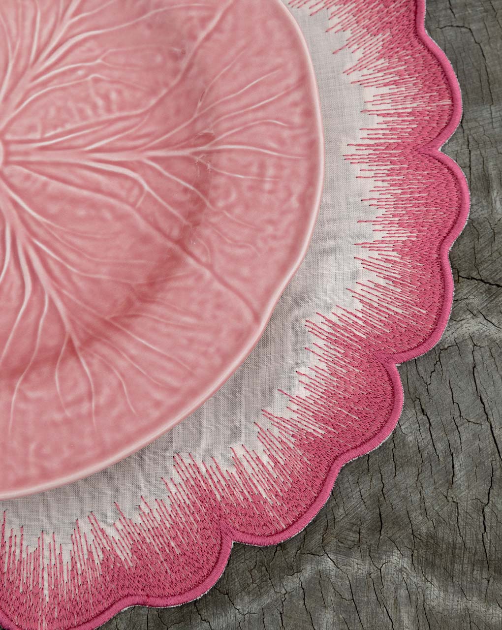 Individuales Vivi en Lino Rosa con Bordado de Pelitos. Set de 4