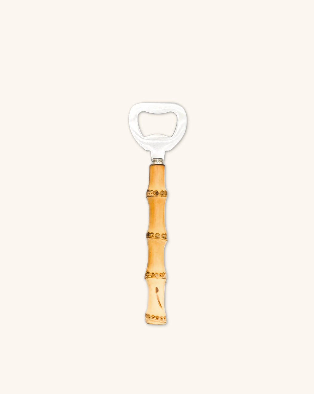 Destapador de botellas con mango de bambú. Al ser un artículo de bambú natural, puede tener irregularidades y variaciones en los mangos.