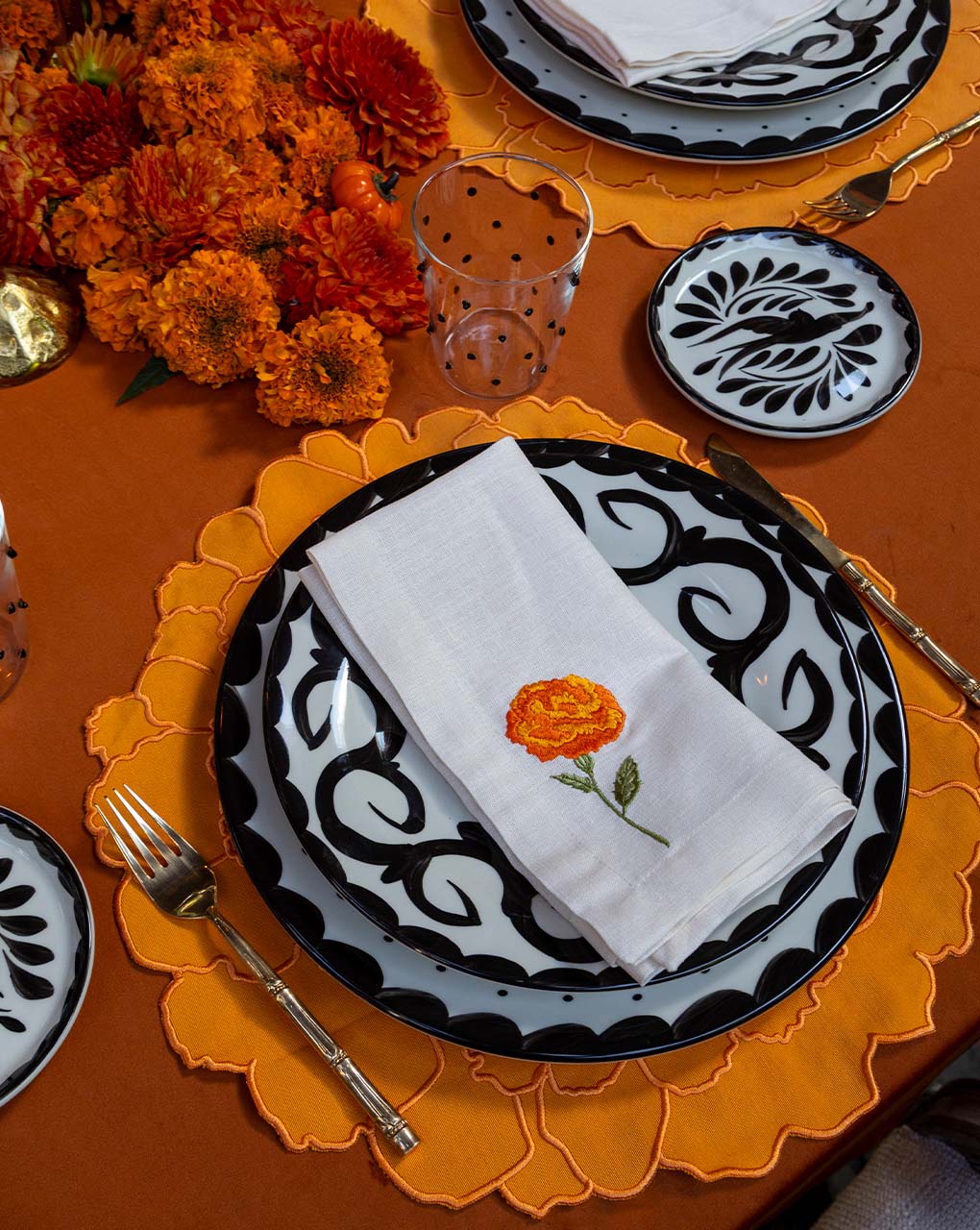 Plato Trinche 26 cm Puebla en Blanco y Negro. Set de 4