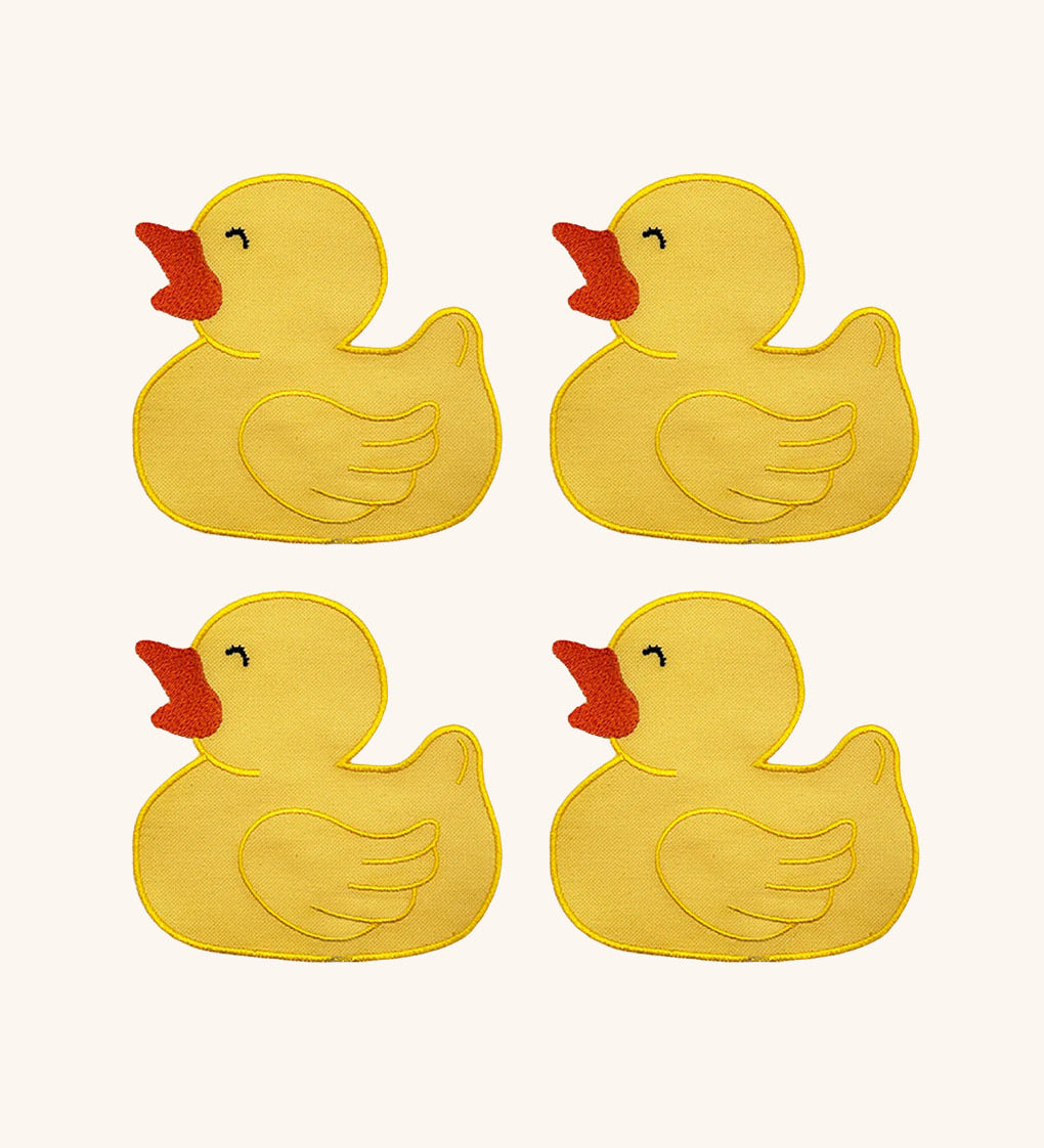 Coctelera en Algodón Amarillo con Bordado de Pato. Set de 4