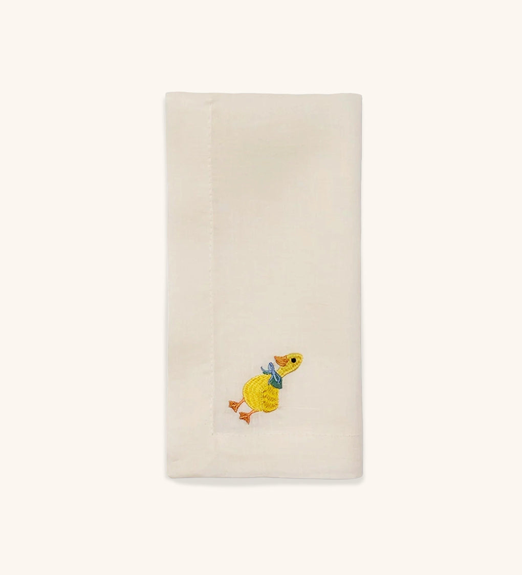 Servilleta Easter en Lino Ivory con Bordado de Pato. Set de 4