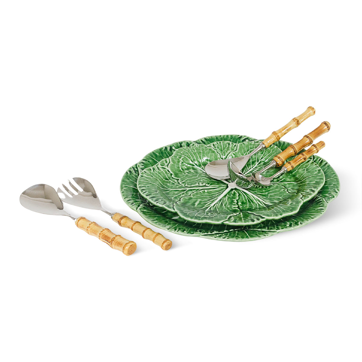 REPOLLO SERVING SET ZASHPACK: Set de Cubiertos para Servir de Bambú, Platón Ovalado de Repollo de 43cm, Platón Ovalado de Repollo 37.5cm