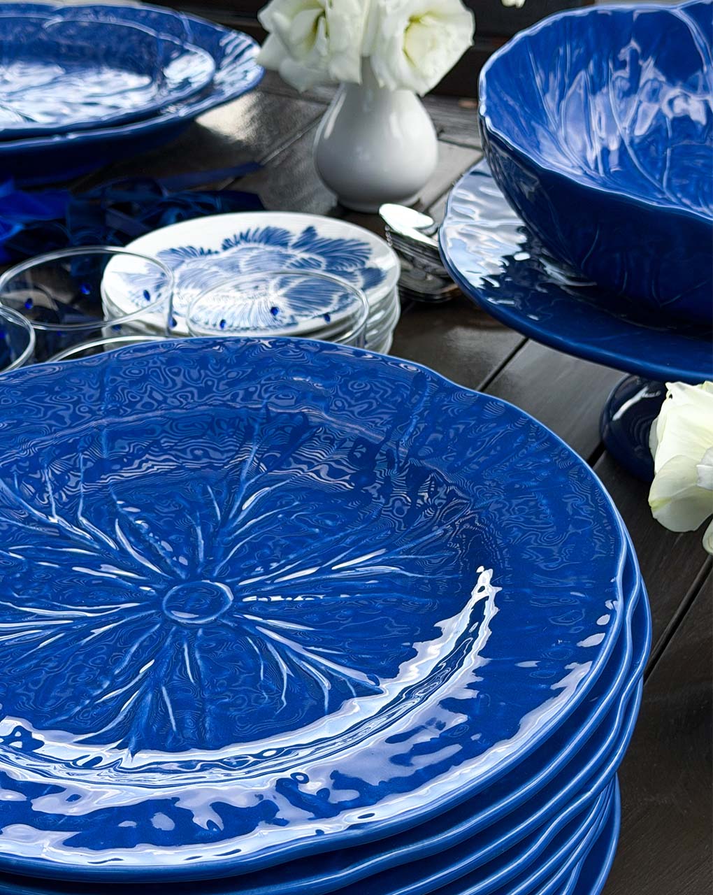 El icónico plato repollo hecho en Portugal en exclusiva para Zash. Bajoplato en cerámica azul cobalto, un plato que será un clásico instantáneo. Ideal para combinar con otras vajillas, poner mesas de hermosas y para usar toda la vida.