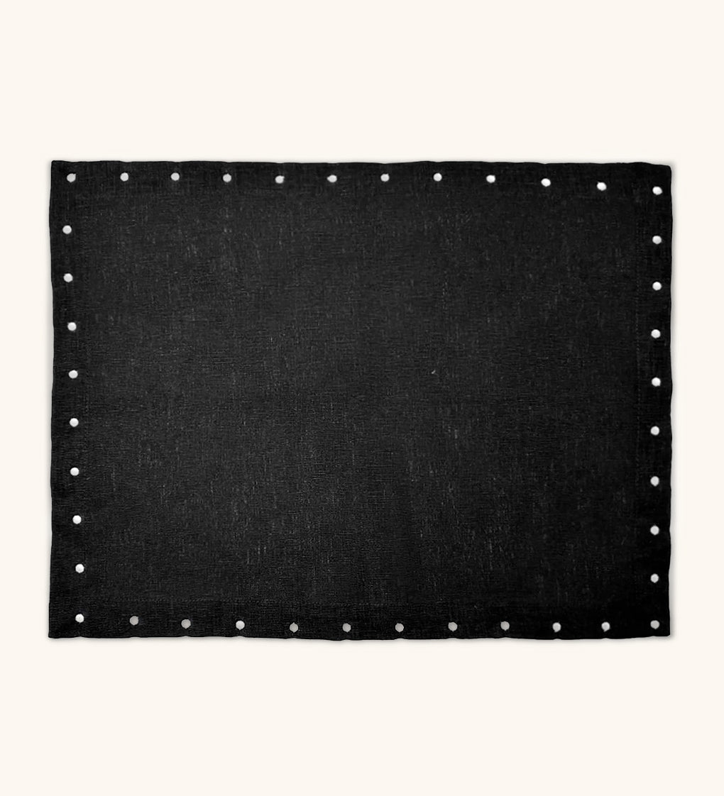 Individual Silvia en Lino Negro con Bordado de Puntitos Ivory. Set de 4