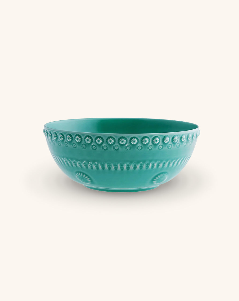 Ensaladera Bordallo Pinheiro 2,5 Lts colección Fantasía en color aqua.