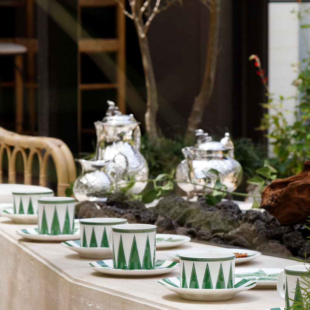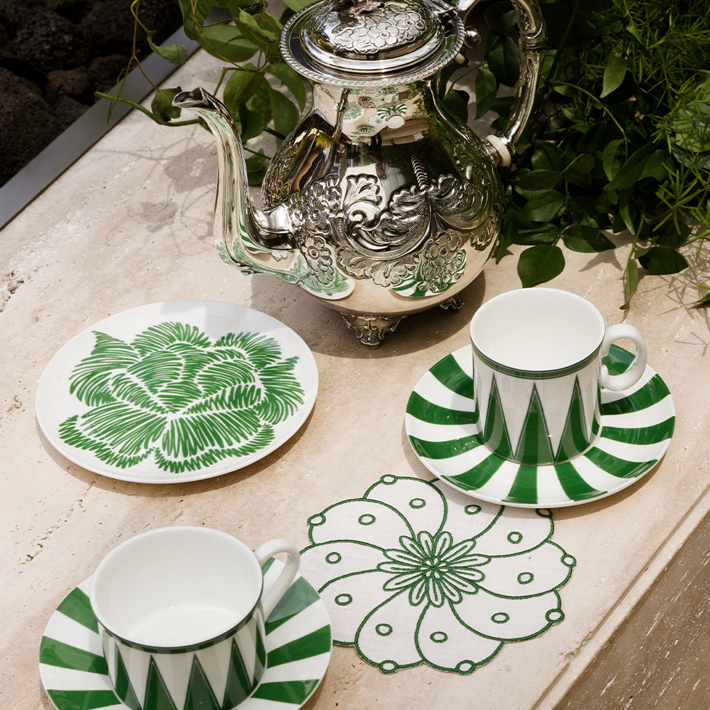 Tazas Espresso con Plato Identidad Verde. Set de 4