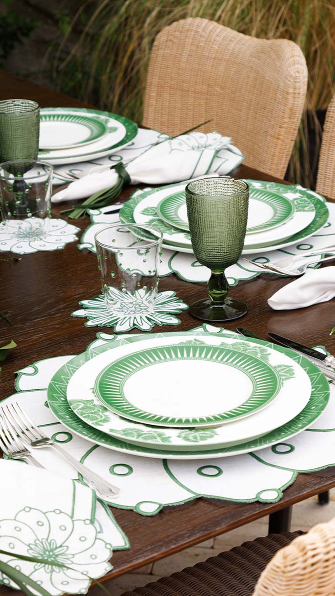 Set Completo Vajilla Identidad en color Verde. Set para 4 personas