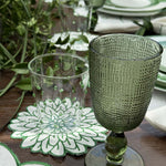 La mantelería IDENTIDAD de Sofía Aspe Interiorismo la esencia de México en cada mesa. Los coasters son confeccionados en lino español bordado en forma de biznaga, paciflora y dalia con hilo verde. Sofisticados y clásicos.