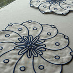 Individuales Identidad en Lino Blanco con Bordado de Biznaga en Azul. Set de 4