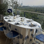 La mantelería IDENTIDAD de Sofía Aspe Interiorismo la esencia de México en cada mesa. El mantel esta confeccionado en lino español con estampado de flores en rojo. Sofisticado y clásico.
