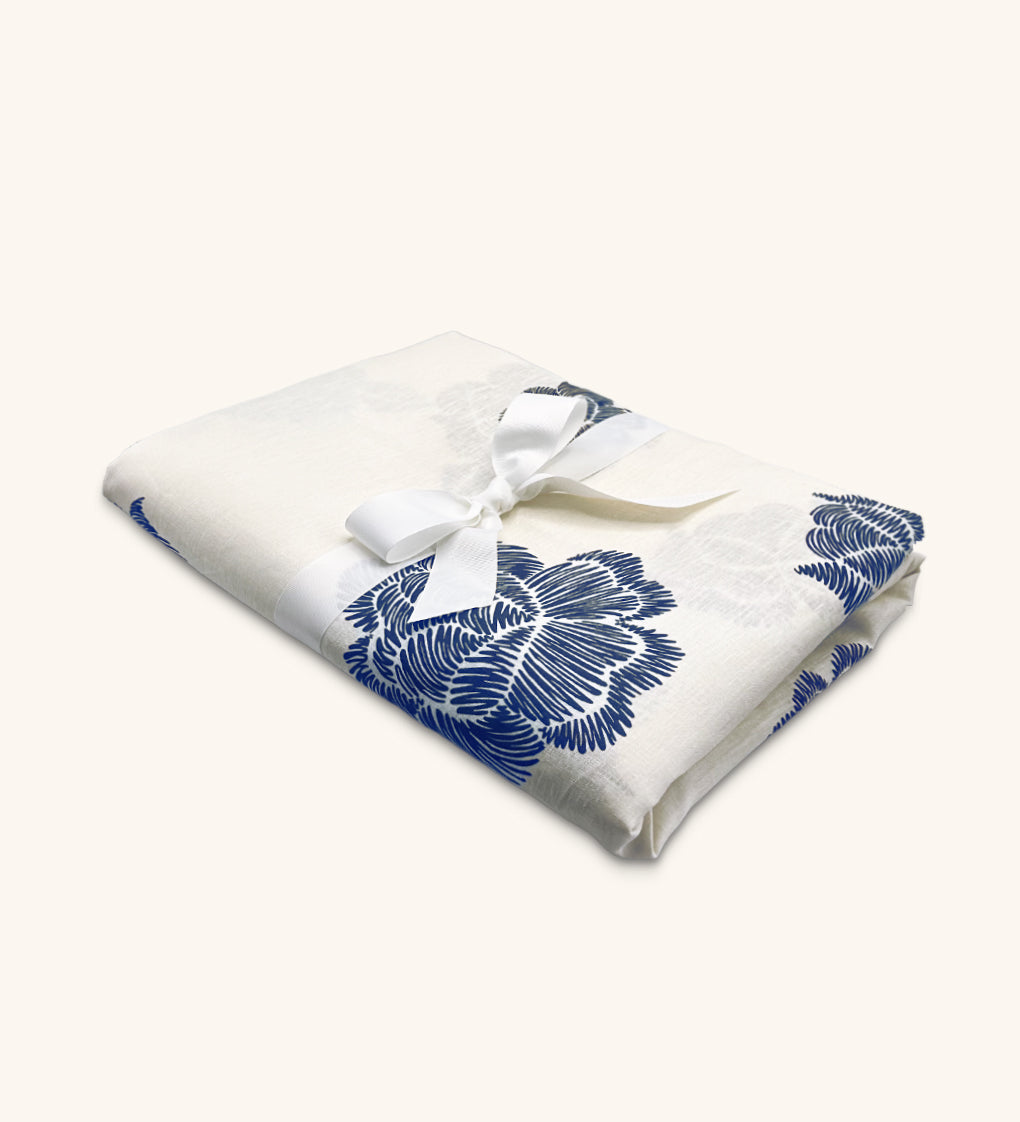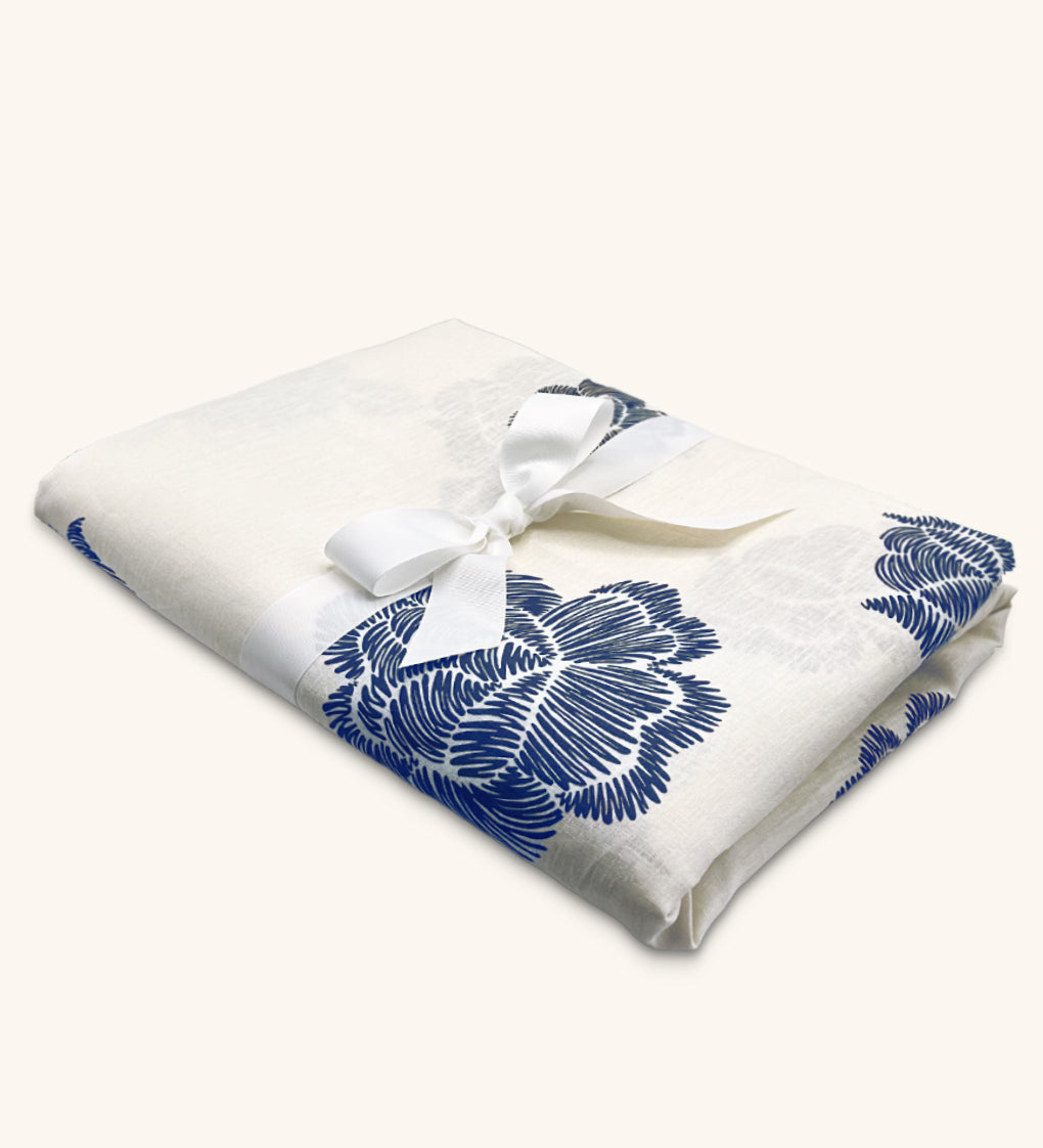 Mantel de Mesa Rectangular en Lino Blanco con Flores Azules 5 x 2.7m