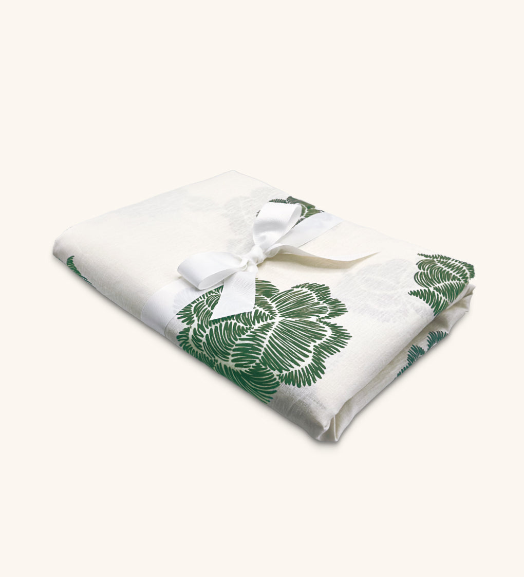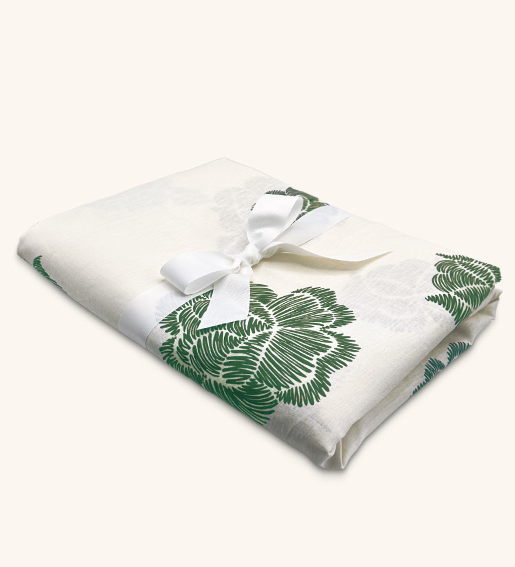 Mantel de Mesa Rectangular en Lino Blanco con Flores Verdes 5 x 2.7m