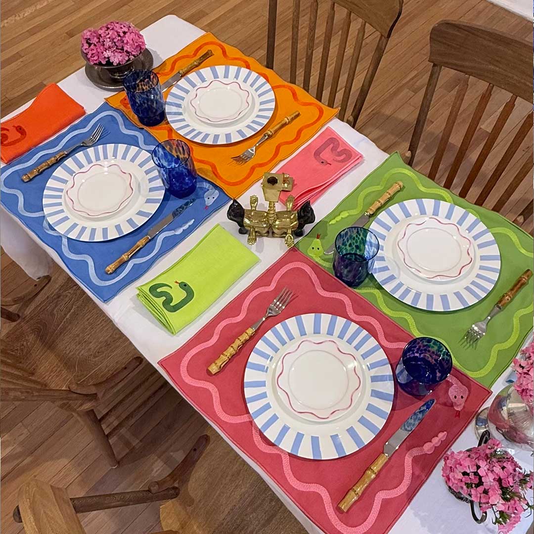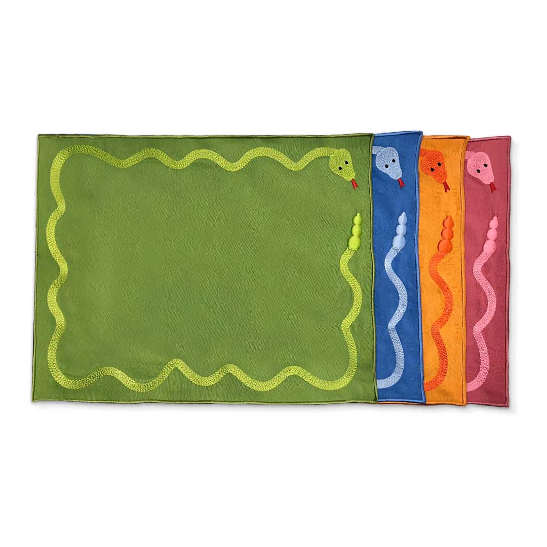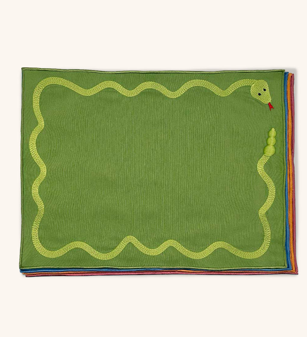 Individuales Culebra en Algodón de Colores Bordado con una Serpiente. Set de 4