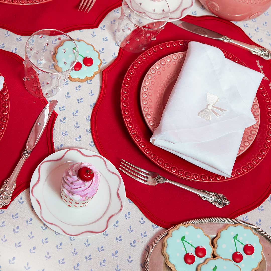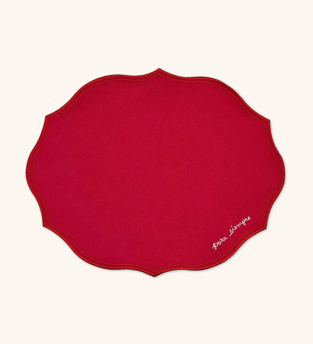 Individuales Mystic de Algodón Rojo con Bordado "Para siempre". Set de 4