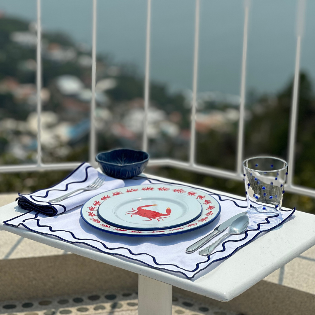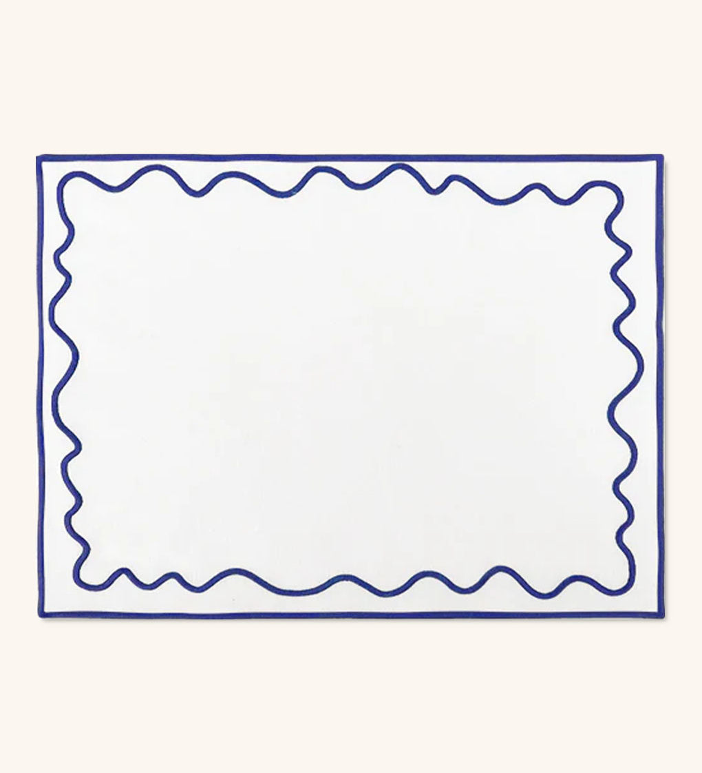 Juego de 4 Manteles Individuales Regina en Loneta Blanca con Ondas en Azul.