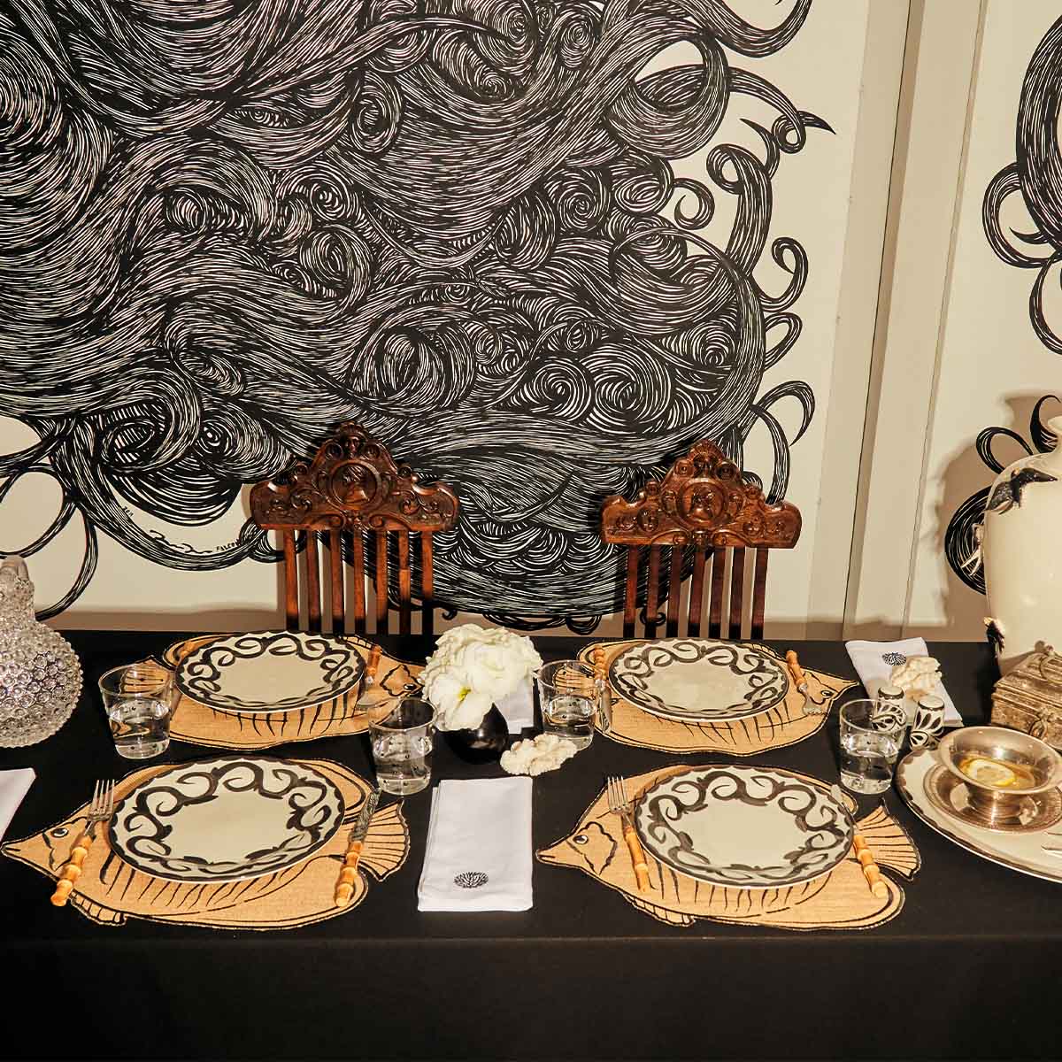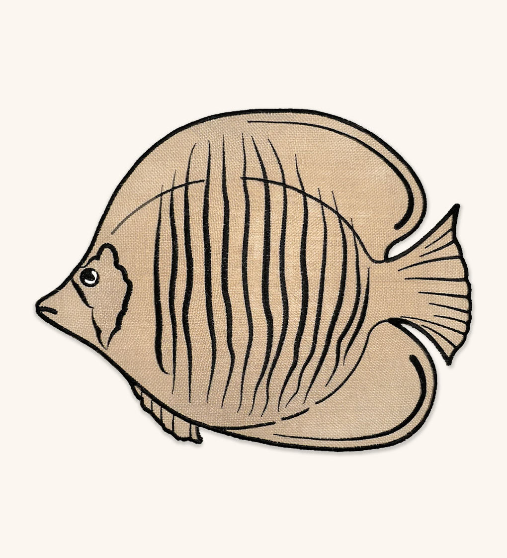 Individuales La Mar de Pez en Yute Bordados en Negro. Set de 4
