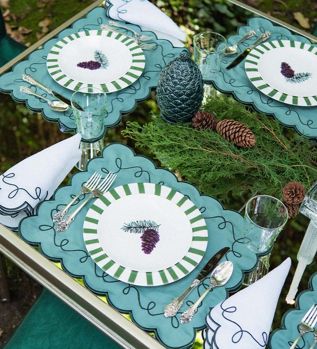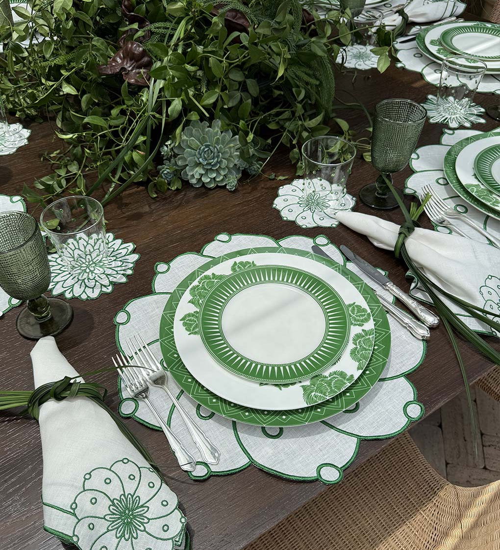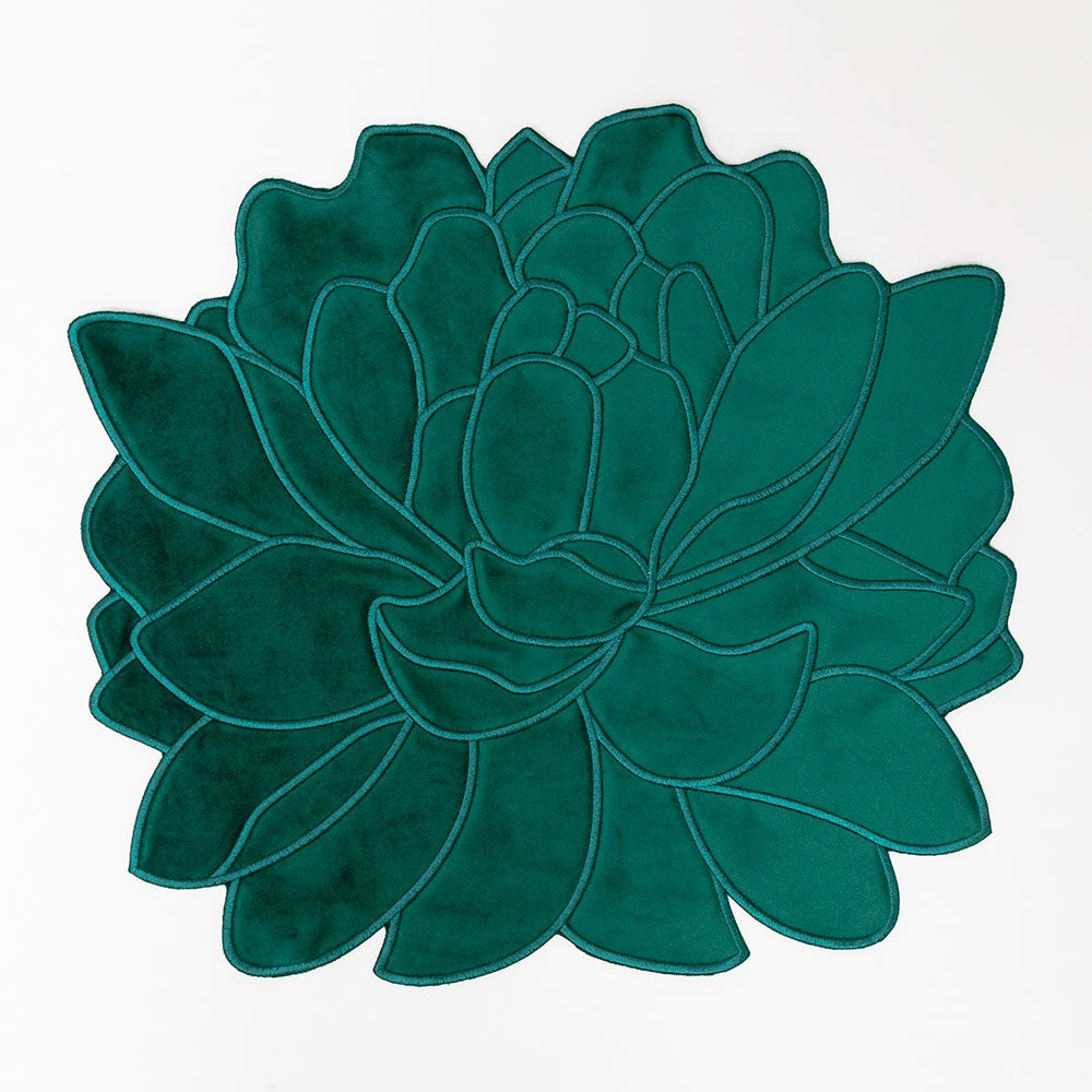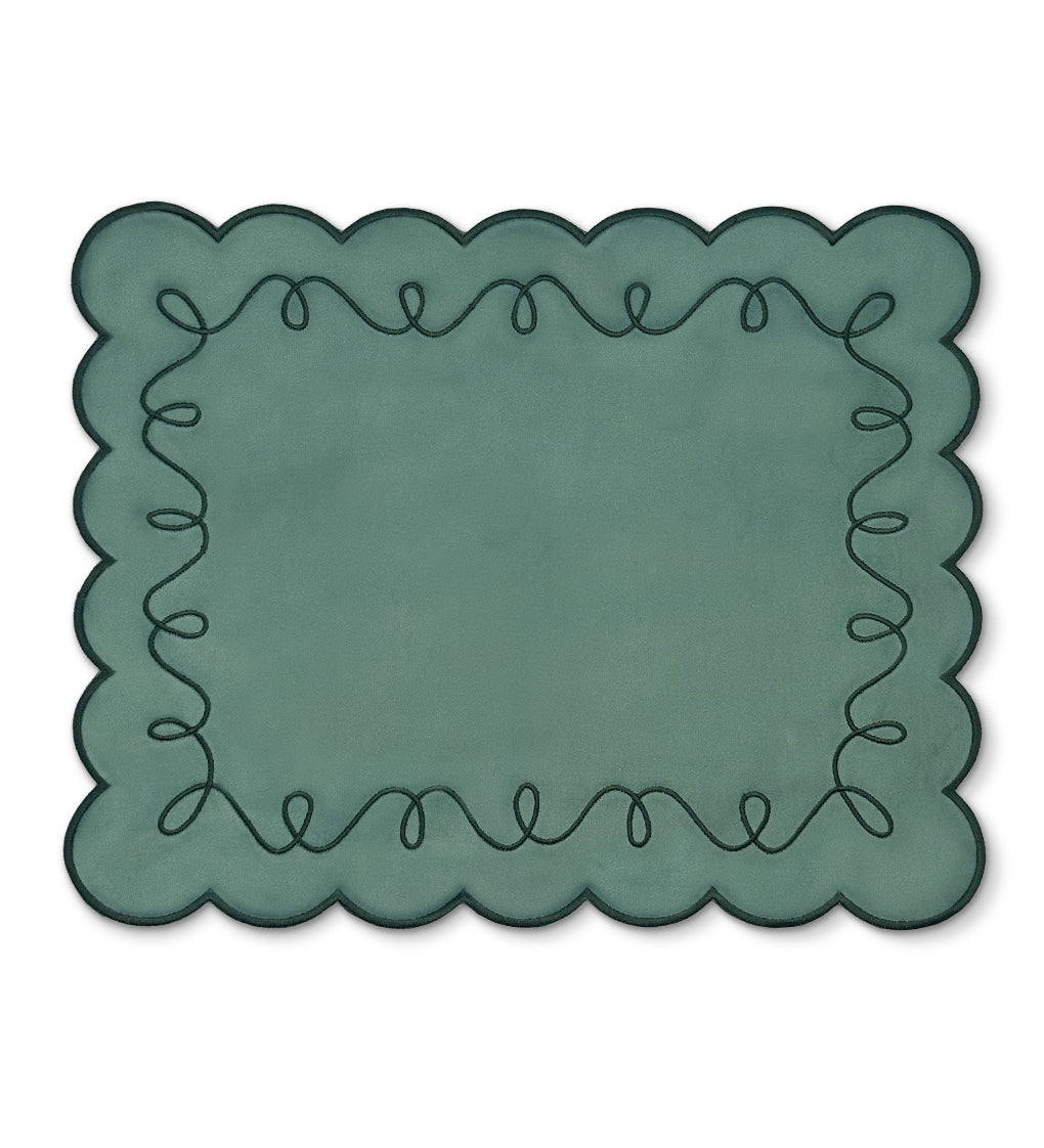 Manteles Individuales Blossom en Terciopelo Verde con Orilla Bordada. Set de 4