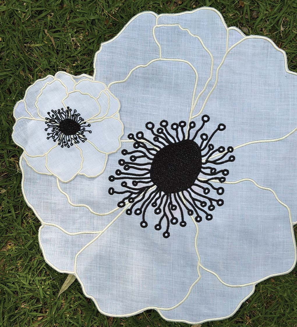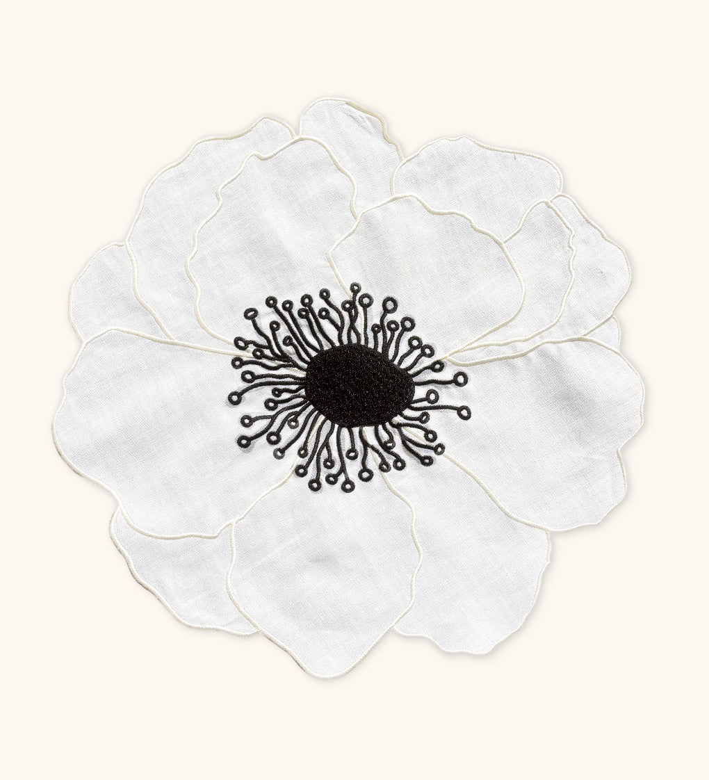 Individuales Identidad en Lino Blanco con Bordado de Biznaga en Negro. Set de 4