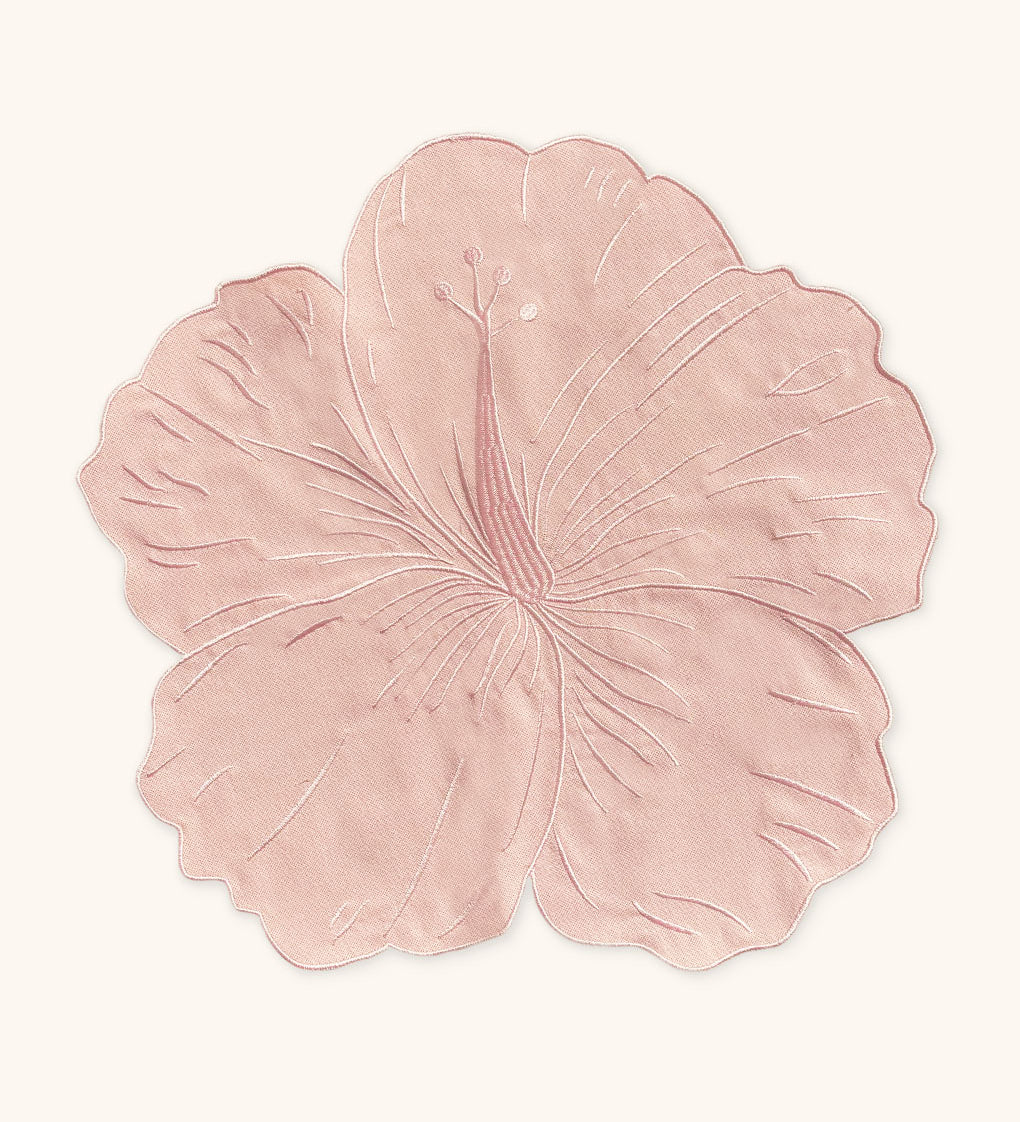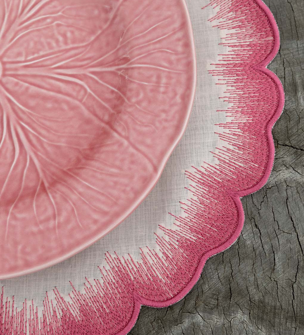 Individuales Vivi en Lino Rosa con Bordado de Pelitos. Set de 4