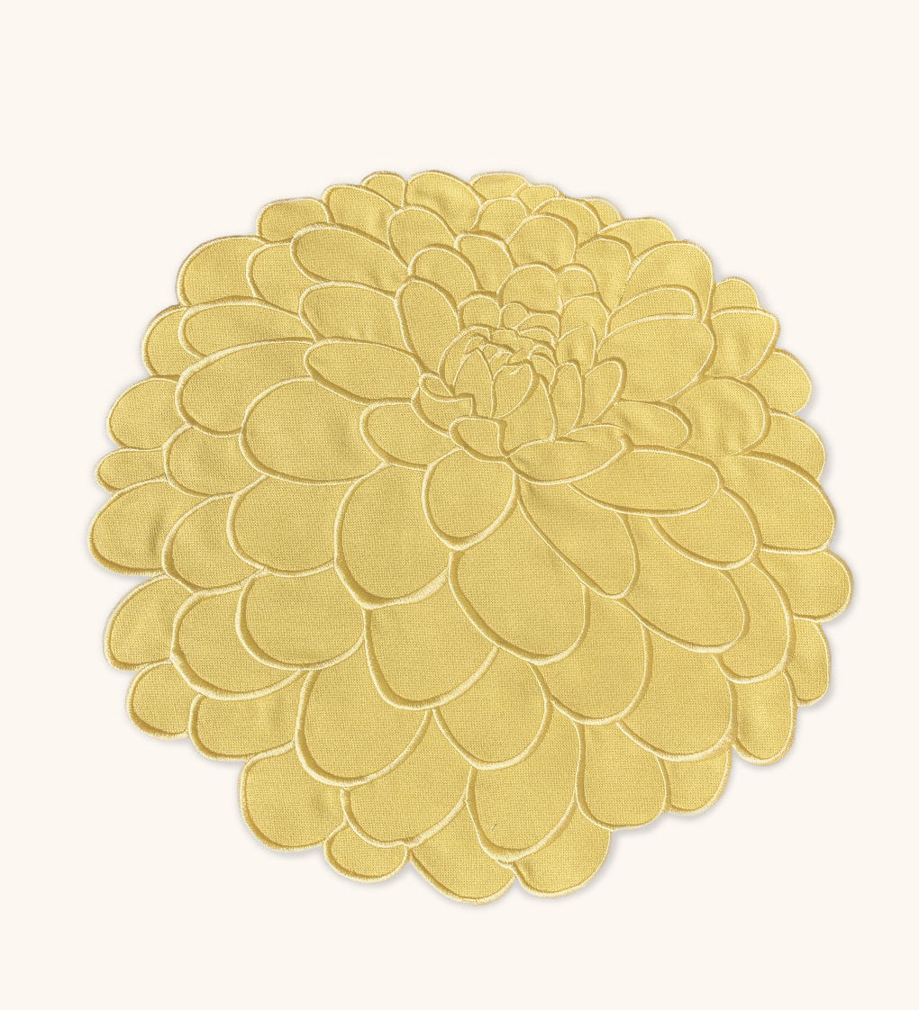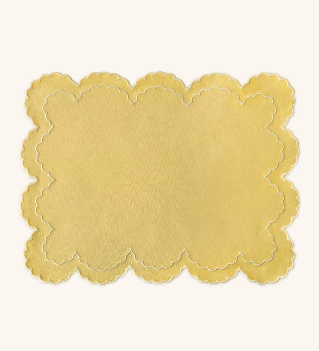Individuales Vivi en Lino Amarillo con Bordado de Pelitos. Set de 4