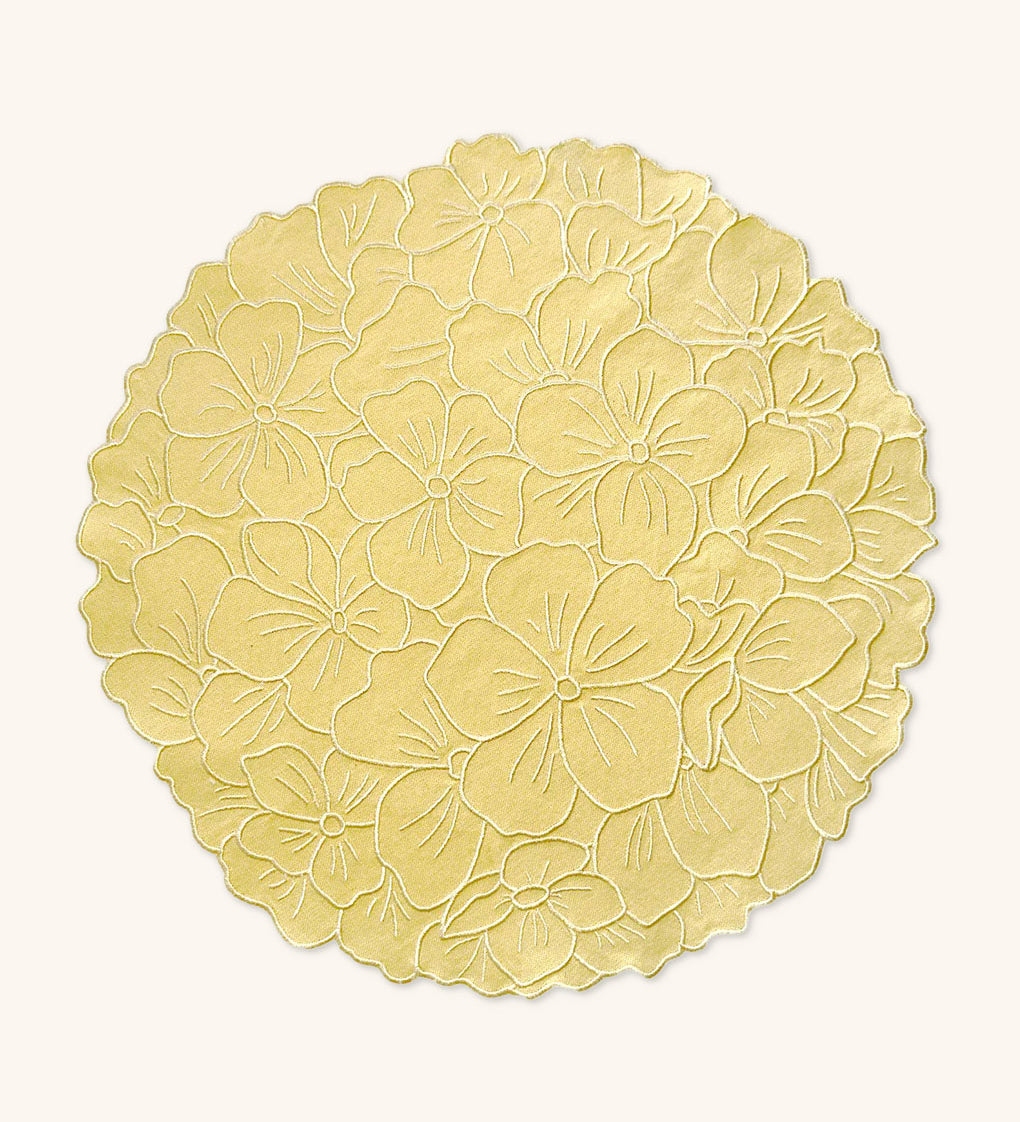 Individuales Bouquet en Algodón Amarillo con Bordado de Hortensia. Set de 4