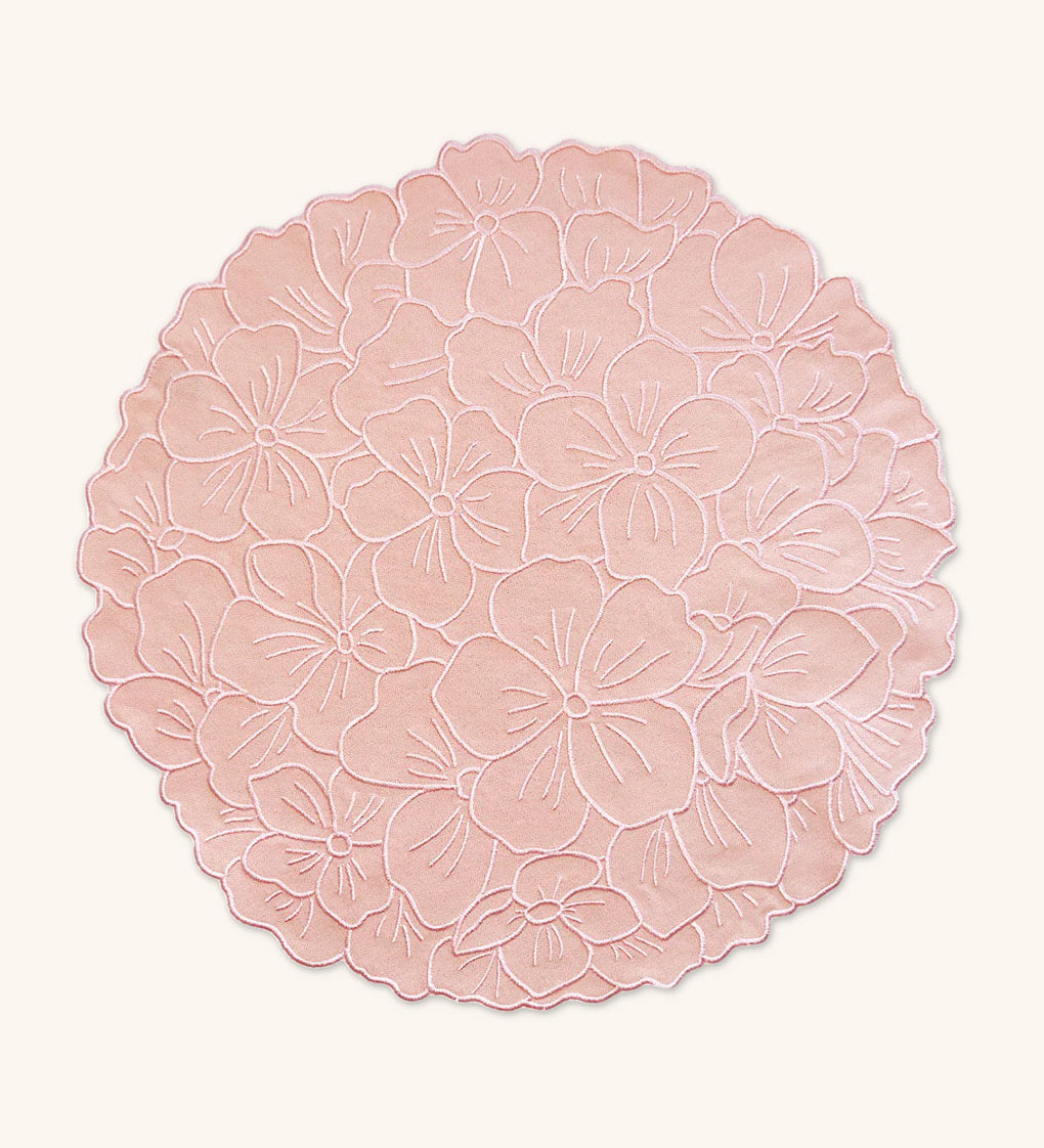 Individuales Bouquet en Algodón Rosa con Bordado de Hortensia. Set de 4